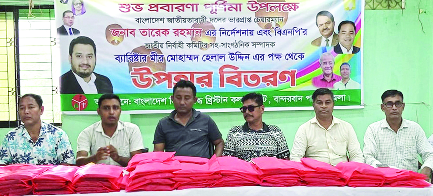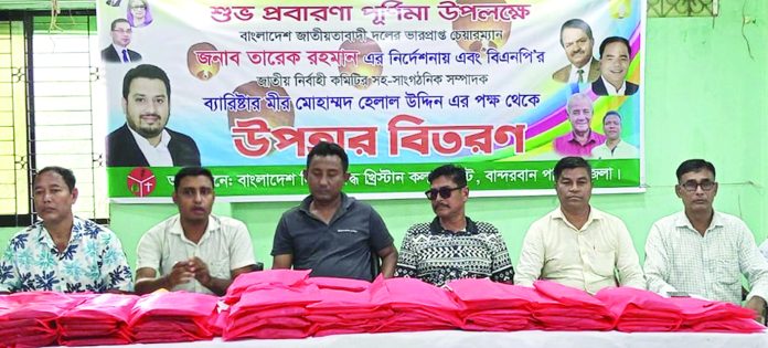 প্রবারণা পূণিমা উপলক্ষে হিন্দু বৌদ্ধ খ্রিস্টান কল্যাণ ফ্রন্ট বান্দরবান পার্বত্য জেলার উদ্যোগে বিএনপির জাতীয় নির্বাহী কমিটির সহসাংগঠনিক সম্পাদক ব্যারিস্টার মীর মোহাম্মদ হেলাল উদ্দীনের পক্ষ থেকে বৌদ্ধ সমপ্রদায়ের মাঝে উপহার সামগ্রী বিতরণ করা হয়েছে।