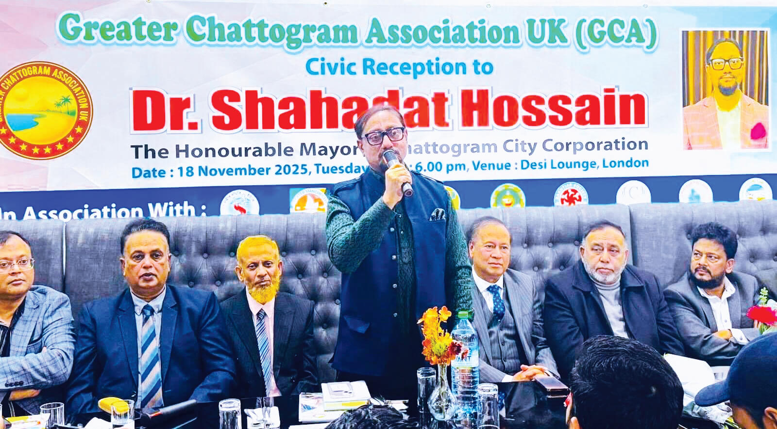 গ্রেটার চট্টগ্রাম এসোসিয়েশন ইউকের বর্তমান কার্যনির্বাহী কমিটির আহ্বায়ক ব্যারিস্টার আবুল মনছুর মোহাম্মাদ শাহজাহানের সভাপতিত্বে এবং মোহাম্মাদ কায়সার ও মাসুদুর রহমানের পরিচালনায় এতে বক্তব্য দেন, এসোসিয়েশনের ট্রাস্টি চেয়ারম্যান ও প্রতিষ্ঠাতা সভাপতি ব্যারিস্টার মনোয়ার হোসেন, বিএনপির চেয়ারপার্সনের উপদেষ্টা মন্ডলী সদস্য মাহিদুর রহমান, লন্ডন বাংলাদেশ প্রেসক্লাবের সভাপতি আবু তাহের চৌধুরী, ট্রাস্টি শওকত মাহমুদ টিপু, কাউন্সিলর সৈয়দ ফিরোজ গণি, মনির মাহমুদ, এরশাদ মালেক, ডা. নোবেল, জোনায়েদ আহমেদ, কাউন্সিলর শামসাদ চৌধুরী, বাংলাদেশ প্রেসক্লাব ইউকে’র প্রেসিডেন্ট শাকির হোসাইন, আসমা আলম, সুজন বড়ুয়া, বাপ্পী ওমর প্রমুখ। মেয়রকে ফুলের তোড়া ও ক্রেস্ট দিয়ে এসোসিয়েশনের পক্ষ থেকে সম্মাননা প্রদান করা হয়। বেশ কয়েকটি সংগঠনের পক্ষ থেকেও মেয়রকে ফুলের তোড়া প্রদান করা হয়। প্রেস বিজ্ঞপ্তি।