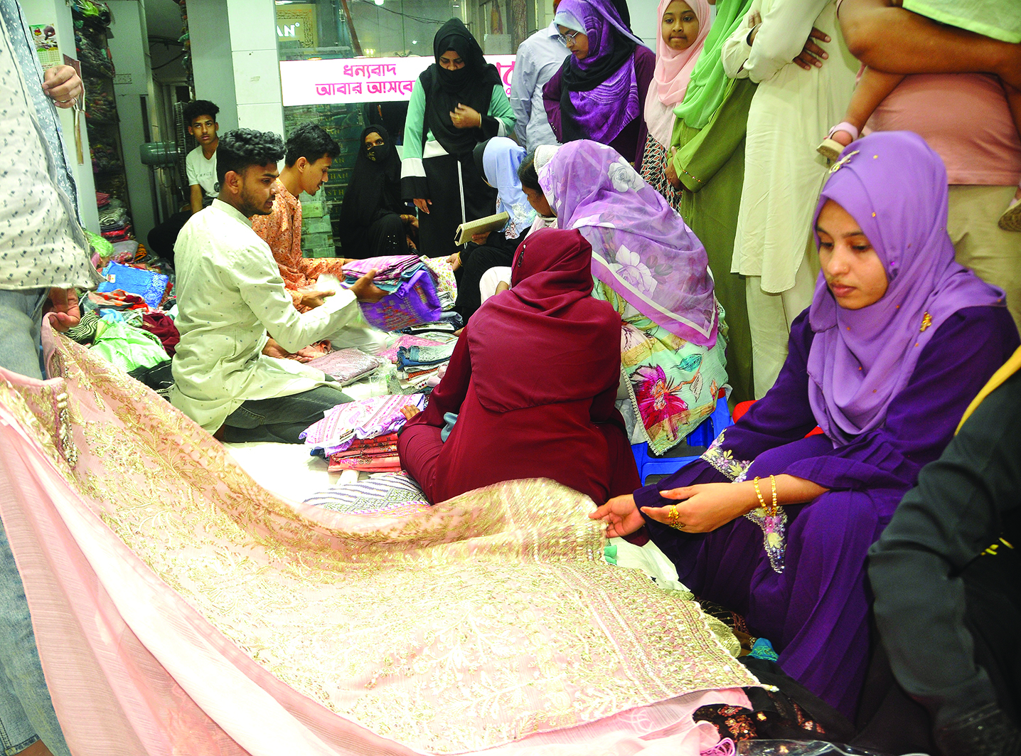 ঈদকে কেন্দ্র করে নগরীর বিভিন্ন শপিংমল–মার্কেটের ব্যবসায়ীরা সব ধরনের প্রস্তুতি সেরে নিয়েছেন। ইতোমধ্যে তারা বাহারি রঙ ও ডিজাইনের পোশাকের বিরাট সংগ্রহশালা নিয়ে আসেন। অপরদিকে এছাড়া দর্জিপাড়ায় বেড়ে যায় কাপড় সেলাইয়ের ব্যস্ততা। ঈদের বাজারে বেচাবিক্রি পুরোদমে শুরু না হলেও অনেকে আগাম কেনাকাটা করতে ইফতারের পর মার্কেটগুলোতে ভিড় করছেন।