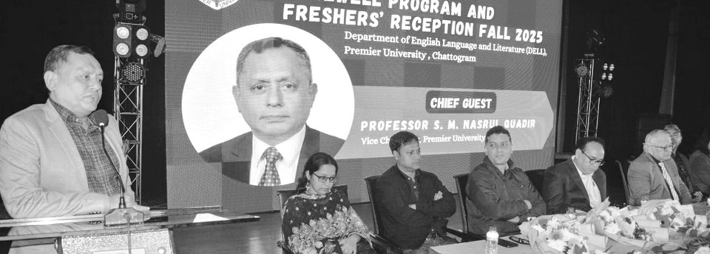প্রিমিয়ার ইউনিভার্সিটির ইংরেজি বিভাগে নবীনদের বরণ ও বিদায়ী শিক্ষার্থীদের সংবর্ধনা অনুষ্ঠান গত ৮ জানুয়ারি সকাল ১১টায় প্রিমিয়ার ইউনিভার্সিটির দামপাড়াস্থ কেন্দ্রীয় অডিটোরিয়ামে আয়োজন করা হয়। ইংরেজি বিভাগের বিএ (অনার্স) ৪৭তম ব্যাচের বরণ এবং ৪০তম ব্যাচের বিদায় উপলক্ষে আয়োজিত এ অনুষ্ঠানে প্রধান অতিথি ছিলেন প্রিমিয়ার ইউনিভার্সিটির উপাচার্য অধ্যাপক এস. এম. নছরুল কদির। তিনি নবীন শিক্ষার্থীদের অভিনন্দন জানিয়ে বলেন, এই বিশ্ববিদ্যালয়ে শুধু লেখাপড়া হয় না, তার পাশাপাশি কো–কারিকুলার ও এক্সট্রা কারিকুলার এক্টিভিটিসও হয়। সুতরাং এখানে তোমাদের অধ্যয়ন সুখকর হবে, এ–ব্যাপারে আমি নিশ্চিত। তিনি নবীন শিক্ষার্থীদের কাছে প্রিমিয়ার ইউনিভার্সিটির বিভিন্ন সুযোগ–সুবিধার কথা তুলে ধরেন।