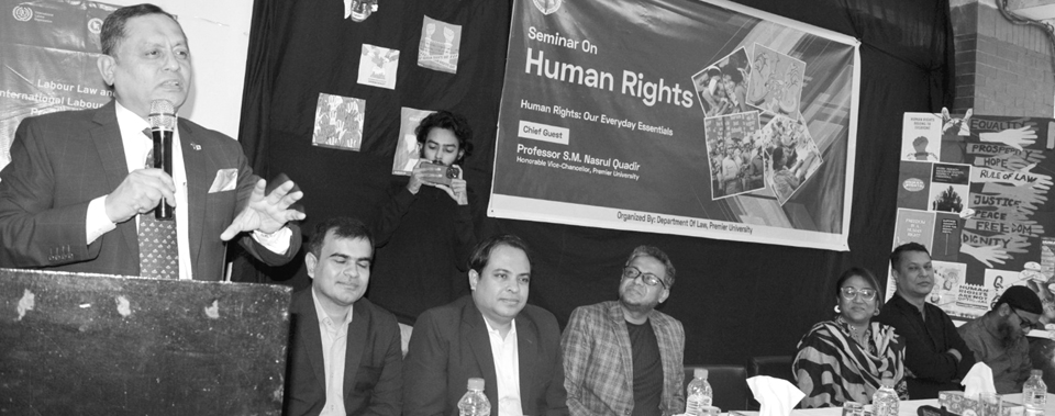 প্রিমিয়ার ইউনিভার্সিটির আইন বিভাগের উদ্যোগে গত ১০ ডিসেম্বর হাজারী লেইনস্থ ভবনে আন্তর্জাতিক মানবাধিকার দিবস উদযাপন করা হয়। এ উপলক্ষে মানবাধিকার দিবস বিষয়ক আলোচনা সভা, প্রদর্শনী বিতর্ক, পোস্টার প্রদর্শনী ও সাংস্কৃতিক অনুষ্ঠান অনুষ্ঠিত হয়। এতে প্রধান অতিথি ছিলেন উপাচার্য অধ্যাপক এস. এম. নছরুল কদির। বিভাগের চেয়ারম্যান অনুপ কুমার বিশ্বাসের সভাপতিত্বে এতে বিশেষ অতিথি ছিলেন অনুষদের ডিন তানজিনা আলম চৌধুরী। বক্তা ছিলেন বিভাগের সহযোগী অধ্যাপক আহমদ রাজীব চৌধুরী, সঞ্জয় বিশ্বাস, হিল্লোল সাহা ও সহকারী অধ্যাপক ফরিদ উদ্দিন আহমেদ নোমান। প্রধান অতিথি বলেন, মানুষই মানবাধিকারের কথা বলে, আবার মানুষই মানবাধিকার লঙ্ঘন করে। বস্তুত পৃথিবীতে যতদিন মানবাধিকার লঙ্ঘন থাকবে, ততদিন মানবাধিকার আদায়ের জন্য আন্দোলন ও সংগ্রাম থাকবে। তিনি বলেন, আমাদের দেশে প্রতিনিয়ত অন্যায়অত্যাচারঅবিচারখুনধর্ষণরাহাজানি ঘটে থাকে, ঘটে থাকে এঙট্রাজুডিশিয়াল কিলিং। আহমদ রাজীব চৌধুরী বলেন, রাষ্ট্রব্যবস্থায় মানবাধিকারের চেতনা ছড়িয়ে পড়বে, আমরা সবাই যদি মানবাধিকার বাস্তবায়নে কাজ করি। সঞ্জয় বিশ্বাস বলেন, মানবাধিকার সংস্কৃতি বলতে প্রতিটি মানুষের মর্যাদা, স্বাধীনতা, নিরাপত্তা, ন্যায়বিচার, বৈচিত্র্যের প্রতি সম্মান এবং জবাবদিহিতা্তস্বাভাবিক ও প্রতিষ্ঠিত এক প্রাত্যহিক অভ্যাসে পরিণত হয়। প্রেস বিজ্ঞপ্তি।