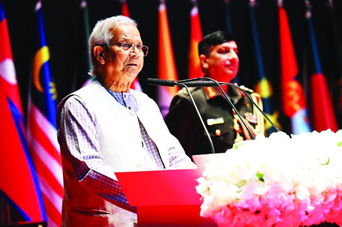 প্রধান উপদেষ্টা বক্তব্যের শুরুতে ১৯৭১ সালের মুক্তিযুদ্ধের শহীদদের প্রতি শ্রদ্ধা নিবেদন করে বলেন, এটি একটি বিশেষ মাস। আমাদের মুক্তিযুদ্ধের ঐতিহাসিক বিজয়ের মাস। আমরা সকলেই গর্বের সঙ্গে স্মরণ করি সেই সব বীরদের, যারা আমাদের মুক্তিযুদ্ধে জীবন উৎসর্গ করেছেন। এছাড়াও সকল শ্রেণিপেশার মানুষের আত্মত্যাগকে আমরা স্মরণ করি, যারা দেশের মুক্তির সংগ্রামে অবদান রেখেছেন।