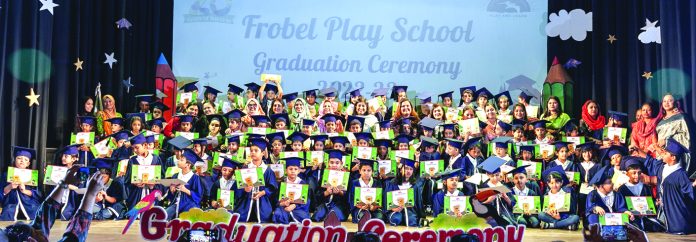 অনুষ্ঠানের শুরুতে জাতীয় সংগীত পরিবেশন পরবর্তী স্কুলের শিক্ষার্থীরা পবিত্র কুরআন তিলাওয়াত করে। এরপর স্বাগত বক্তব্য রাখেন স্কুলের প্রিন্সিপাল মিসেস হাওড়া (তেহসিন) জোহাইর। তিনি বিদায়ী শিক্ষার্থীদের সুন্দর, উজ্জ্বল ও আলোকিত পথে চলার আহ্বান জানান। এছাড়া তিনি ঢাকায় ফ্রোবেল প্লে স্কুলের নতুন শাখা উদ্বোধনের ঘোষণা দেন। পরবর্তীতে যথাμমে ১৫, ১০ ও ৫ বছরের বেশী সময় ধরে স্কুলের সাথে সম্পৃক্ত থাকা ৮ জন শিক্ষিকাকে সম্মাননা স্মারক প্রদান করা হয়। বাংলা ও ইংরেজি দলীয় নৃত্য, নাটিকা (স্লিপিং বিউটি), বাংলা ও ইংরেজি ছড়া গান, এবং উই স্যাল ওভারকাম মঞ্চস্থ হয়। এরপর শিক্ষার্থীদের মাঝে μস্েট ও সার্টিফিকেট প্রদানের মাধ্যমে সমাপ্তি ঘটে ফ্রোবেল প্লে স্কুলের গ্রেজুয়েশান সেরামনি ২০২৩ এর। প্রেস বিজ্ঞপ্তি।