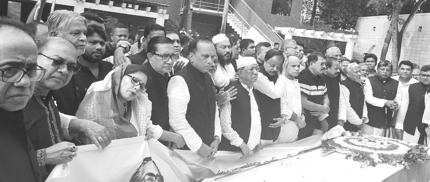 টুঙ্গিপাড়ায় জাতির জনক বঙ্গবন্ধু শেখ মুজিবুর রহমানের সমাধিতে গতকাল শনিবার বাংলাদেশ জেলা পরিষদ চেয়ারম্যান এসোসিয়েশনের সভাপতি এটিএম পেয়ারুল ইসলাম ও সাধারণ সম্পাদক মুনির চৌধুরীর নেতৃত্বে পুষ্পস্তবক অর্পণ, শ্রদ্ধা নিবেদন ও দোয়া মাহফিল অনুষ্ঠিত হয়। এ সময় ফাতেহা পাঠ, জাতির পিতা ও তাঁর পরিবারের সব শহীদের রুহের মাগফেরাত কামনা করে মোনাজাত করা হয়। এসময় এটিএম পেয়ারুল ইসলাম বলেন, প্রধানমন্ত্রীর ভিশন ‘গ্রাম হবে শহর’–স্লোগানকে সামনে রেখে জেলা পরিষদের চেয়ারম্যানগণ কাজ করে যাচ্ছে। বাংলাদেশ জেলা পরিষদে চেয়ারম্যান এসোসিয়েশন গঠন হওয়ার পর আমরা বঙ্গবন্ধুর মাজার জেয়ারত, দোয়া মাহফিলসহ শ্রদ্ধা নিবেদন করে আবারও শপথ নিলাম মুক্তিযুদ্ধের চেতনা সমুন্নত রেখে স্মার্ট বাংলাদেশ গঠনে বলিষ্ঠ ভূমিকা রাখব। এ সময় উপস্থিত ছিলেন বীর মুক্তিযোদ্ধা এ্যড. আতিয়ার রহমান মুন্সী, বীর মুক্তিযোদ্ধা এ্যাড. মো. জিল্লুর রহমান, এ্যাড. মো. নাসির উদ্দীন খান, মো. মিসবাউর রহমান, বীর মুক্তিযোদ্ধা মো. শাহজাহান, বীর মুক্তিযোদ্ধা মো. মাহবুবুর রহমান, বীর মুক্তিযোদ্ধা গোলাম মহিউদ্দিন, এ কে এম শফিকুল মোর্শেদ, আব্দুস সালাম, হাফিজুর রহমান, ড. এম হারুন অর রশীদ, আবু বক্কর সিদ্দীক, চন্দন শীল, মাহ্ফুজুর রহমান মঞ্জু, বীর মুক্তিযোদ্ধা এ্যাড. মো. সাজেদুর রহমান খান, মনির হোসেন ভূঁইয়া, বীর মুক্তিযোদ্ধা এ্যাড. অসিত কুমার সরকার, বীর মুক্তিযোদ্ধা আল মামুন সরকার, মো. জাফর আলী, ওসমান গণী পাটোয়ারী, বীর মুক্তিযোদ্ধা মফিজুর রহমান বাবলু, সাইফুজ্জামান পিকলু, এ্যাড. সুভাষ চন্দ্র বোষ, মো. শাহাদৎ হোসেন, খাঁন সাইফুল্লাহ পনির, পংকজ কুমার কুন্ডু, শেখ হারুন অর রশীদ, সালমা রহমান হ্যাপী, নজরুল ইসলাম, আব্দুল ওয়াদুদ পিন্টু। প্রেস বিজ্ঞপ্তি।