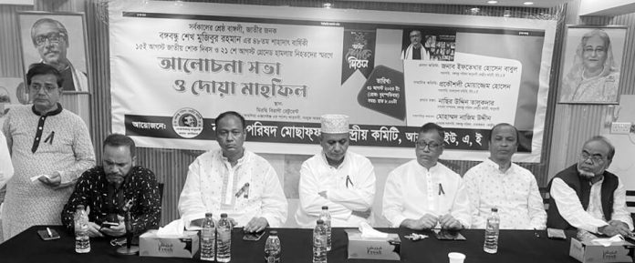 বঙ্গবন্ধু পরিষদ মোছাফ্ফাহ শিল্প নগরী শাখার আবুধাবী উদ্যোগে বঙ্গবন্ধু শেখ মুজিবুর রহমানের ৪৮ তম শাহাদাৎবাষির্কী সংগঠনের ভারপ্রাপ্ত সভাপতি নাজিম উদ্দিন সভাপতিত্বে ও সাধারণ সম্পাদক আজিম সিকদারের পরিচালনায় অনুষ্ঠিত হয়। এতে প্রধান অতিথি ছিলেন বঙ্গবন্ধু পরিষদ কেন্দ্রীয় কমিটি আবুধাবীর সভাপতি ইফতেখার হোসেন বাবুল।