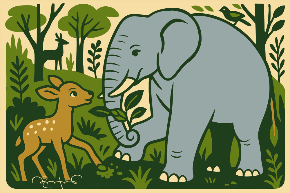 জঙ্গলের ভেতরে এক আশ্চর্য হাতির গল্প ছড়িয়ে আছে। তাকে সবাই ডাকত বনের ডাক্তার। সে ছিল না কোনো সাধারন হাতি; ছোটবেলা থেকেই তার কৌতূহল ছিল ভেষজ গাছগাছড়ার প্রতি। অন্য হাতিরা যেখানে কচি ডালপাতা চিবুতে ব্যস্ত, সেখানে সে দাঁড়িয়ে দাঁড়িয়ে গন্ধ শুঁকত, গাছের বাকল কেটে দেখত ভেতরে কেমন রস।একদিন হরিণশাবক পা ভেঙে ঝোপের ভেতর কাঁদছিল। ডাক্তার হাতি চারপাশে খুঁজে পেল একধরনের পাতা যেটা সে আগে দেখেছিল নদীর ধারে। শুঁড়ে তুলে তা চিবিয়ে মেখে দিল হরিণের ক্ষতে। আশ্চর্য, কয়েকদিনের মধ্যেই হরিণশাবকের পা শুকিয়ে গেল, সে আবার দৌড়াতে পারল। সেদিন থেকেই হাতির খ্যাতি ছড়িয়ে পড়ল।তারপর থেকে যে–ই আহত হতো, বা অসুস্থ হয়ে পড়ত, সবাই ছুটে আসত এই হাতির কাছে। বানররা এলো পেটব্যথা নিয়ে, পাখিরা এল ডানা ভাঙা অবস্থায়, এমনকি বাঘও একদিন এলো চোখে কাঁটা নিয়ে। হাতি শুঁড় দিয়ে কাঁটা বের করল, তারপর একগোছা ঘাস মেখে দিল। বাঘ তখন হেসে উঠল যতটা সম্ভব ভয়ানক দাঁত বের করেও কৃতজ্ঞতা প্রকাশ করল।