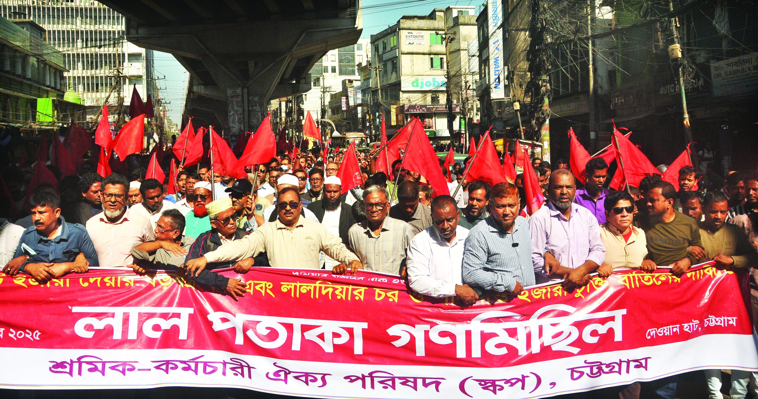 চট্টগ্রাম বন্দরের নিউমুরিং কন্টেনার টার্মিনাল (এনসিটি) ইজারা প্রক্রিয়া বন্ধ এবং লালদিয়ার চর ও পানগাঁও টার্মিনালের ইজারা চুক্তি বাতিলের দাবিতে শ্রমিক কর্মচারী ঐক্য পরিষদ (স্কপ) বন্দর অভিমুখে লাল পতাকা গণমিছিল করেছে। গতকাল (বুধবার) সকাল ১১টায় শুরু হওয়া এ কর্মসূচিতে বিভিন্ন শ্রমিক সংগঠনে শ্রমিকেরা অংশ নেন। মিছিল পূর্ব সমাবেশে সভাপতিত্ব করেন জাতীয়তাবাদী শ্রমিক দল চট্টগ্রাম বিভাগীয় সাধারণ সম্পাদক ও বন্দর সিবিএর সাবেক সাধারণ সম্পাদক কাজী শেখ নুরুল্লাহ বাহার। অনুষ্ঠান পরিচালনা করেন টিইউসি চট্টগ্রাম জেলা কমিটির যুগ্ম সম্পাদক ইফতেখার কামাল খান।