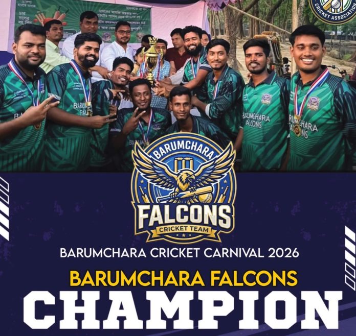 বরুমচড়া ক্রিকেট এসোসিয়েশনের আয়োজনে ক্রিকেট কার্নিভাল টুর্নামেন্টের ফাইনাল খেলায় বরুমচড়া ফ্যালকন্স চ্যাম্পিয়ন হয়েছে। গত শুক্রবার বিকালে বরুমচড়া শহীদ বশরুজ্জমান উচ্চ বিদ্যালয় মাঠে টুর্নামেন্টের ফাইনাল খেলায় বরুমচড়া ফ্যালকন্স হারায় বরুমচড়া টাইগার্সকে। টাইগার্স টিম টসে হেরে নির্ধারিত ১২ ওভার খেলে ৮৩ রানের টার্গেট দেয়। জবাবে ফ্যালকন্স ১১.১ ওভারে ৪ উইকেট হারিয়ে লক্ষ্যে পৌঁছে যায়। ম্যান অব দ্যা টুর্নামেন্ট নির্বাচিত হয় ফয়সাল শাফি, ম্যান অব দ্যা ফাইনাল নির্বাচিত হয় মো. আইয়ুব, সর্বাধিক রান করেন মো. মিনহাজ এবং আসিফ আহমেদ সবচেয়ে বেশি ইউকেট পান। ফাইনাল খেলায় প্রধান অতিথি ছিলেন বরুমচড়া শহীদ বশরুজ্জমান উচ্চ বিদ্যালয়ের প্রাক্তন শিক্ষার্থী জুডিশিয়াল ম্যাজিস্ট্রেট (জজ) মো. দেলোয়ার হোসেন, জাফর আয়েশা ফাউন্ডেশনের পরিচালক মো. আরিফ মহিউদ্দিন, ক্রীড়া সংগঠক নুর খান, টুর্নামেন্টের প্রধান সমন্বয়কারী মঈনউদ্দীন আরিফ, মো.আকতার, মতিন চৌধুরী, মোর্শেদ হোসেন, নেজাম উদ্দিন, মঈনউদ্দীন জুয়েল, আসিফ আহমেদ, সাইমন, ইমরান মাহিন প্রমুখ। টুর্নামেন্টে খেলা পরিচালনা করেন মো. শহীদ চৌধুরী, ইমরান হোসেন জাবেদ ও ইকবাল হোসেন রিমন।
