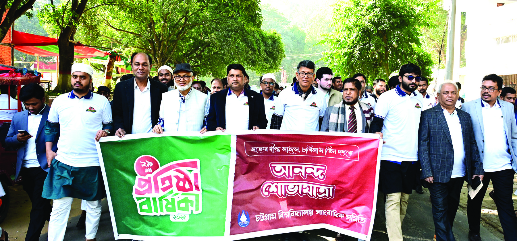‘সত্যের দীপ্ত সাহসে, চবিসাস তিন দশকে’ স্লোগানকে সামনে রেখে বর্ণাঢ্য আয়োজনে চট্টগ্রাম বিশ্ববিদ্যালয় সাংবাদিক সমিতির (চবিসাস) ২৯তম প্রতিষ্ঠাবার্ষিকী অনুষ্ঠিত হয়েছে। গতকাল সোমবার সকাল সাড়ে ৯টায় চাকসু ভবন থেকে বর্ণাঢ্য শোভাযাত্রার মাধ্যমে আনুষ্ঠানিক পর্ব শুরু হয়। শোভাযাত্রাটি শহীদ মিনার, প্রশাসনিক ভবন প্রদক্ষিণ করে মেরিন সাইন্স ইনস্টিটিউটে এসে শেষ হয়। এরপর বেলা ১০টায় মেরিন সাইন্স ইনস্টিটিউট মিলনায়তনে আলোচনা সভার মধ্য দিয়ে অনুষ্ঠানের মূল পর্ব শুরু হয়।