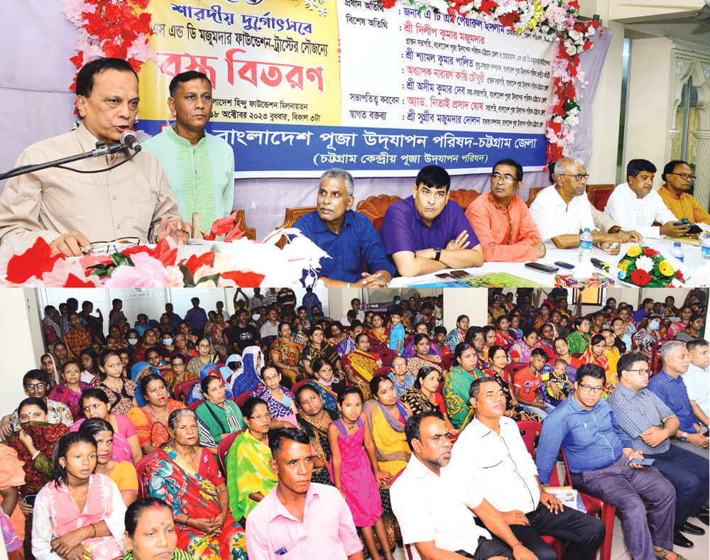 চট্টগ্রাম জেলা পরিষদের উদ্যোগে শারদীয় দুর্গাপূজা উপলক্ষে পরিষদের অস্থায়ী কার্যালয়ে পূজামন্ডপ ও প্রতিষ্ঠানের প্রতিনিধিদের মাঝে গতকাল বুধবার শাড়ি বিতরণ করা হয়। এতে প্রধান অতিথি ছিলেন জেলা পরিষদ চেয়ারম্যান এ টি এম পেয়ারুল ইসলাম। সভাপতিত্ব করেন জেলা পরিষদের প্রধান নির্বাহী কর্মকর্তা মো. দিদারুল আলম।