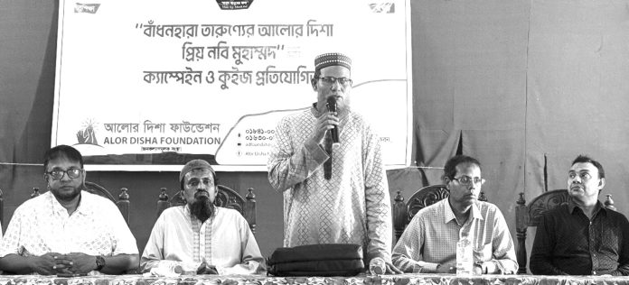 তিনি বলেন, মনীষীদের সর্বশ্রেষ্ঠ হলেন হযরত মুহাম্মদ (দ.)। তিনি বিশ্ববাসীর সামনে আধ্যাত্মিক ও জাগতিক উভয় ক্ষেত্রে অনুপম আদর্শ রেখে গেছেন। সমাজের অনিয়ম ও অশান্তি দূর করতে হলে তাঁর সুন্নাহই সর্বোত্তম পন্থা। তিনি শিক্ষার্থীদেরকে মহানবী (দ)-এর জীবনী পড়ার পরামর্শ দেন। পাশাপাশি সদা সত্যচর্চা, দুর্নীতিমুক্ত থাকা, মা–বাবার আনুগত্য করা এবং নিজের ওপর অর্পিত দায়িত্ব শতভাগ পালন করার প্রতি উদ্বুদ্ধ করেন। এতে বিশেষ আলোচক ছিলেন ফাউন্ডেশনের ভাইস চেয়ারম্যান এম এ ছবুর। অনুষ্ঠান সঞ্চালনা করেন ফাউন্ডেশনের এ্যাম্বুলেন্স সেবাপ্রধান আসিফ মাহমুদ। উপস্থিত ছিলেন স্কুলের শিক্ষক মো. নাছির উদ্দীন, জে এম ইশফাকুল হক, মোহাম্মদ ফখরুল ইসলাম, জাকারিয়া আলম, জাহিদ হাসান, মোফাসসেল নিহাল, তাহামিম, আবির, রাফিদুল মাহিদ, মাহফুজুর রহমান প্রমুখ। শেষে ১০০ জন শিক্ষার্থী কুইজ প্রতিযোগিতায় অংশগ্রহণ করেন। প্রেস বিজ্ঞপ্তি।