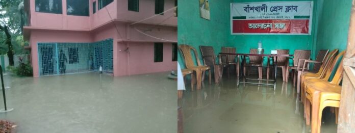 এদিকে, প্রবল বর্ষণ ও পাহাড়ি এলাকার ঢলের পানি পশ্চিমাংশে গিয়ে পুকুর-ডোবা ও বাড়িঘর জলমগ্ন করে তোলে।