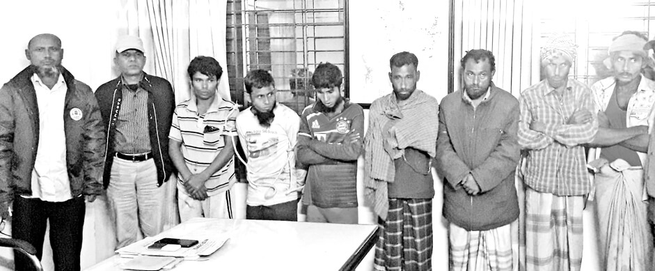 আটককৃতরা হল, লোহাগাড়া উপজেলার বড়হাতিয়া ৯ নম্বর ওয়ার্ডের মৃত কবির আহাম্মদের ছেলে মো. জাফর আলম (৪৯), মৃত মো. আলী হোসেনের ছেলে মো. নুরুল ইসলাম (৪২), মৃত মোহাম্মদ হোসেনের ছেলে মো. হেলাল (৩৫), মৃত মো. ইউনুচের ছেলে মো. নুর আলম (৪০), উখিয়া উপজেলার বালুহালিয়া ১৮ নম্বর রোহিঙ্গা ক্যাম্পের মৃত আবদুস সালামের ছেলে মো. আব্দুল মোনাফ (২৮), একই ক্যাম্পের মৃত মো. আব্দুল মুজিবের ছেলে মো. আব্দুল হাই (৪০) ও মো. শফির ছেলে মো. আইয়াস (২৫)।