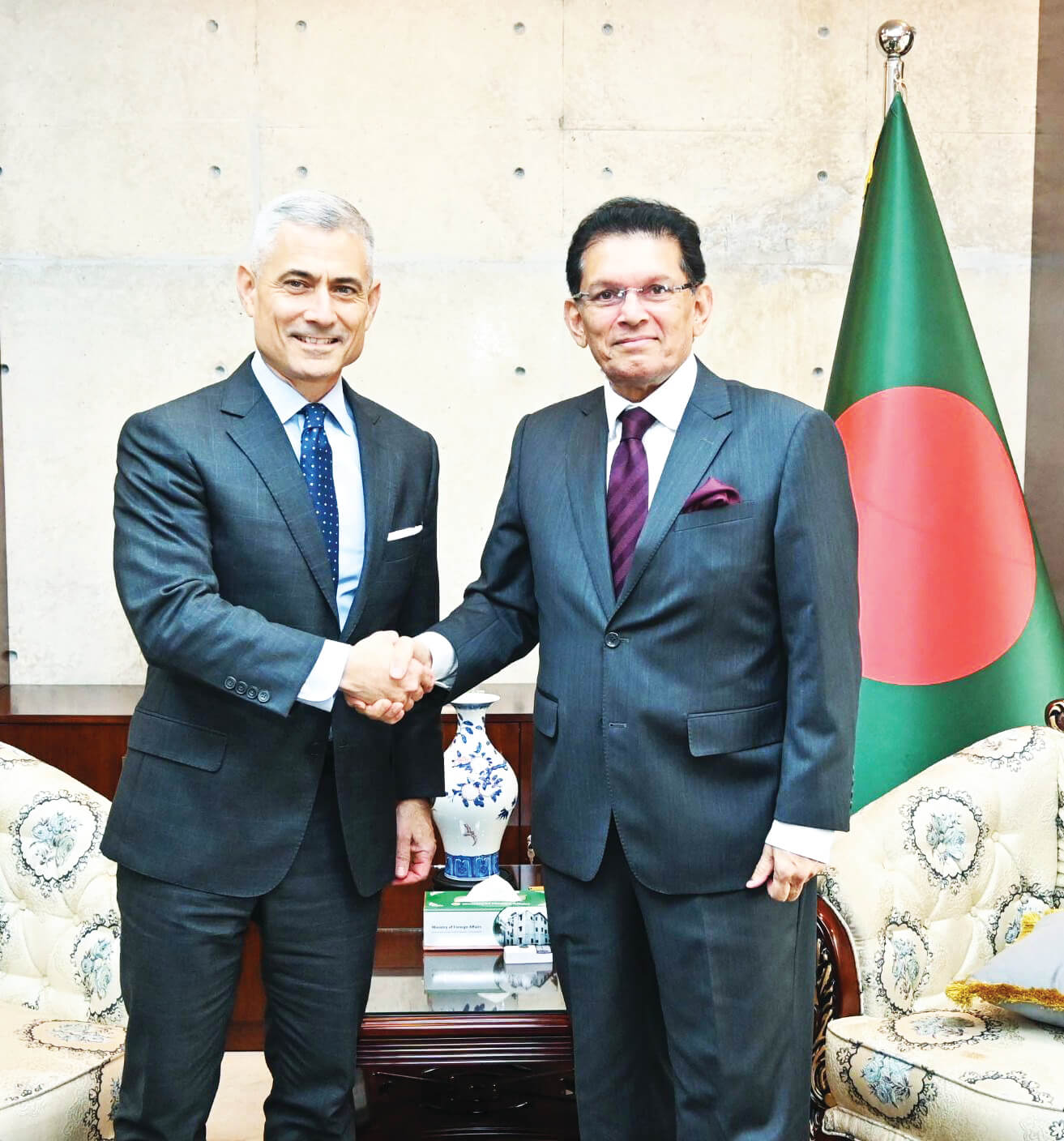 খলিলুর রহমান বলেন, তিনি পল কাপুরকে সরকারের ‘বাংলাদেশ ফার্স্ট’ নীতি সম্পর্কে অবহিত করেছেন এবং জাতীয় স্বার্থ ও অভিন্ন অগ্রগতি লাভ করতে আঞ্চলিক ও বৈশ্বিক অংশীদারদের সঙ্গে শক্তিশালী সম্পর্ক বজায় রাখার ঢাকার কৌশল তুলে ধরেছেন। মধ্যপ্রাচ্যে চলমান সংঘাতের প্রসঙ্গ উল্লেখ করে পররাষ্ট্রমন্ত্রী বলেন, ইতোমধ্যে দুই বাংলাদেশি নাগরিক নিহত হয়েছেন এবং হতাহতের সংখ্যা কমিয়ে আনা ও আরো আঞ্চলিক অস্থিতিশীলতা প্রতিরোধে দ্রুত কূটনৈতিক সমাধানের আহ্বান জানানো হয়েছে। প্রতিরক্ষা সহযোগিতা সম্পর্কিত প্রশ্নের জবাবে খলিলুর রহমান বলেন, বৈঠকে প্রতিরক্ষার বিষয়টি আলোচনায় আসেনি এবং জেনারেল সিকিউরিটি অব মিলিটারি ইনফরমেশন এগ্রিমেন্ট (জিএসওএমআইএ) ও অ্যাকুইজিশন ক্রস–সার্ভিসিং এগ্রিমেন্ট (এসিএসএ)-এর উল্লেখ করা হয়নি। পররাষ্ট্র মন্ত্রণালয়ের এক বিবৃতিতে বলা হয়, বৈঠকে পারস্পরিক শ্রদ্ধা ও অভিন্ন স্বার্থের ভিত্তিতে অর্থনৈতিক সম্পৃক্ততাসহ বাংলাদেশুযুক্তরাষ্ট্র দ্বিপক্ষীয় সম্পর্ক আরো জোরদার করার বিষয়ে উভয় দেশের অঙ্গীকার পুনর্ব্যক্ত করা হয়েছে। পল কাপুর শান্তিপূর্ণ, অবাধ ও উৎসবমুখর সাধারণ নির্বাচন হিসেবে বর্ণনা করে নতুন সরকারকে অভিনন্দন জানান এবং দ্বিপক্ষীয় সম্পর্ক অব্যাহতভাবে আরো শক্তিশালী হবে বলেও আশা প্রকাশ করেন।
