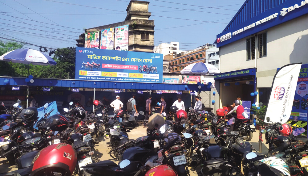 এরই অংশ হিসেবে গত ১৫ নভেম্বর থেকে ৫ দিন ব্যাপী উত্তরা মোটর্স এর সার্ভিস সেন্টার তেজগাঁও, বেগুনবাড়ি ঢাকায় শুরু হল বাজাজ মোটরসাইকেল সার্ভিস ক্যাম্প ও মেলা। এই সার্ভিস ক্যাম্প চলবে ১৯ নভেম্বর পর্যন্ত। এ সার্ভিস ক্যাম্পে গতকাল পর্যন্ত ৫০০ টিরও বেশি বাজাজ মোটরসাইকেলের ফ্রি চেক–আপ ও সার্ভিস করা হয়। তাছাড়া বিশেষ অফার হিসেবে থাকছে ফ্রি ডায়াগনোসিস ও চেক–আপ, লেবার চার্জ এর উপর ৫০% ও জেনুইন পার্টস এর উপর ১০% পর্যন্ত ছাড়, এছাড়া আরও থাকছে প্রতিটি বাইকের জন্য ওয়াটারলেস ওয়াশ এবং পলিশ সম্পূর্ণ ফ্রি। গ্রাহকদের জন্য রয়েছে ফ্রি হেল্থ চেক–আপ ও অভিজ্ঞ প্রশিক্ষক দ্বারা পিরিয়ডিক মেইনটেনেন্স ও সেইফটি ট্রেনিংয়ের ব্যবস্থা। বাংলাদেশে অটোমোবাইল সেক্টরের স্বনামধন্য, সুপ্রতিষ্ঠিত ও শীর্ষস্থানীয় মোটরসাইকেল প্রস্তুতকারী এবং বাজারজাতকারী প্রতিষ্ঠান উত্তরা মোটর্স বাংলাদেশে বাজাজ মোটরসাইকেলের একমাত্র পরিবেশক। প্রেস বিজ্ঞপ্তি।
