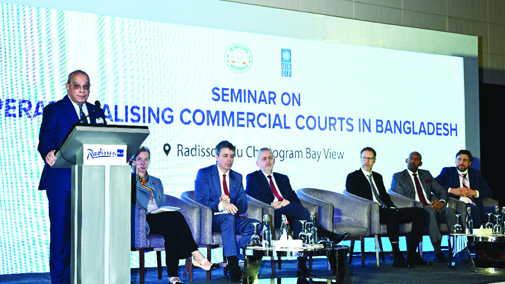 এক্ষেত্রে ইউরোপীয় ইউনিয়নও গুরুত্বপূর্ণ কারিগরি সহায়তা প্রদান করে। পরবর্তীতে আইন মন্ত্রণালয়ের আরও পরীক্ষণ ও পরিমার্জনের পর খসড়াটি এখন চূড়ান্ত আইনগত রূপ পেয়েছে এবং গত বৃহস্পতিবার মন্ত্রিসভায় নীতিগতভাবে অনুমোদিত হয়েছে। বাণিজ্যিক আদালত প্রতিষ্ঠা বাংলাদেশের অর্থনীতির জন্য নতুন দিগন্তের উন্মোচন করবে জানিয়ে তিনি আরো বলেন, ব্যবসায়িক সমপ্রদায়ের পক্ষ থেকে দ্রুত ও আধুনিক বাণিজ্যিক বিরোধ নিষ্পত্তির জন্য একটি ডেডিকেটেড বা বিশেষায়িত বাণিজ্যিক আদালত প্রতিষ্ঠার আহ্বান করে এসেছিল যা শীঘ্রই বাস্তবে রূপ নিতে চলেছে। অনুষ্ঠানে স্বাগত বক্তব্য দেন ইউএনডিপির আবাসিক প্রধান স্টেফান লিলার। অনুষ্ঠানে বিশেষ ছিলেন বাংলাদেশে নিযুক্ত ইইউর রাষ্ট্রদূত মাইকেল মিলার, সুইডেনের রাষ্ট্রদূত নিকোলাস উইকস, কানাডার রাষ্ট্রদূত অজিত সিং, অস্ট্রেলিয়ান দূতাবাসের ডেপুটি হাইকমিশনার ক্লিন্টন পুকি এবং সুইডেন দূতাবাসের কর্মকর্তা অলি লুন্ডিন।