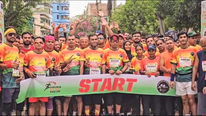 বান্দরবানের মনোরম প্রাকৃতিক পরিবেশে গতকাল শনিবার দ্বিতীয়বারের মতো হাফ হিল ম্যারাথন প্রতিযোগিতা অনুষ্ঠিত হয়েছে। সকালে স্থানীয় রাজার মাঠ থেকে ম্যারাথন দৌড় প্রতিযোগিতা শুরু হয়। দীর্ঘ ২১ কিলোমিটার, ১০ কিলোমিটার ও বেটার রান এই তিন ক্যাটাগরিতে অনুষ্ঠিত প্রতিযোগিতায় নারী–পুরুষ, শিশু ও প্রবীণসহ মোট ৪৯০ জন দৌড়বিদ অংশ নেন। এর মধ্যে ৬৫ জন নারী দৌড়বিদ। জেলা শহরের রাজার মাঠ থেকে এই ম্যারাথন দৌড় চিম্বুক সড়কের উঁচু–নিচু, আঁকা–বাকা পাহাড়ি পথে সাড়ে দশ কিলোমিটার পয়েন্ট পর্যন্ত গিয়ে সম্পন্ন হয়। এই প্রতিযোগিতা সকাল ১০টায় শেষ হয়। পাহাড়ী সড়কে রোমাঞ্চকর এই ম্যারাথনে অংশ নিতে পেরে দৌড়বিদরা উচ্ছ্বাস প্রকাশ করেন। হিলস রানার আয়োজিত বান্দরবান হিল হাফ ম্যারাথন সিজন–২–এর আহ্বায়ক শহীদুল ইসলাম সোহেল বলেন, বান্দরবানের প্রাকৃতিক সৌন্দর্যকে দেশ–বিদেশে তুলে ধরার পাশাপাশি স্থানীয় তরুণ প্রজন্মকে ক্রীড়ামুখী করে তোলাই আমাদের মূল উদ্দেশ্য। এই আয়োজন ধীরে ধীরে একটি বার্ষিক উৎসবের রূপ নিচ্ছে। প্রতিযোগিতা শেষে বিজয়ীদের মাঝে পুরস্কার বিতরণ করা হয়। অংশগ্রহণকারীদের হাতে সনদও তুলে দেওয়া হয়।