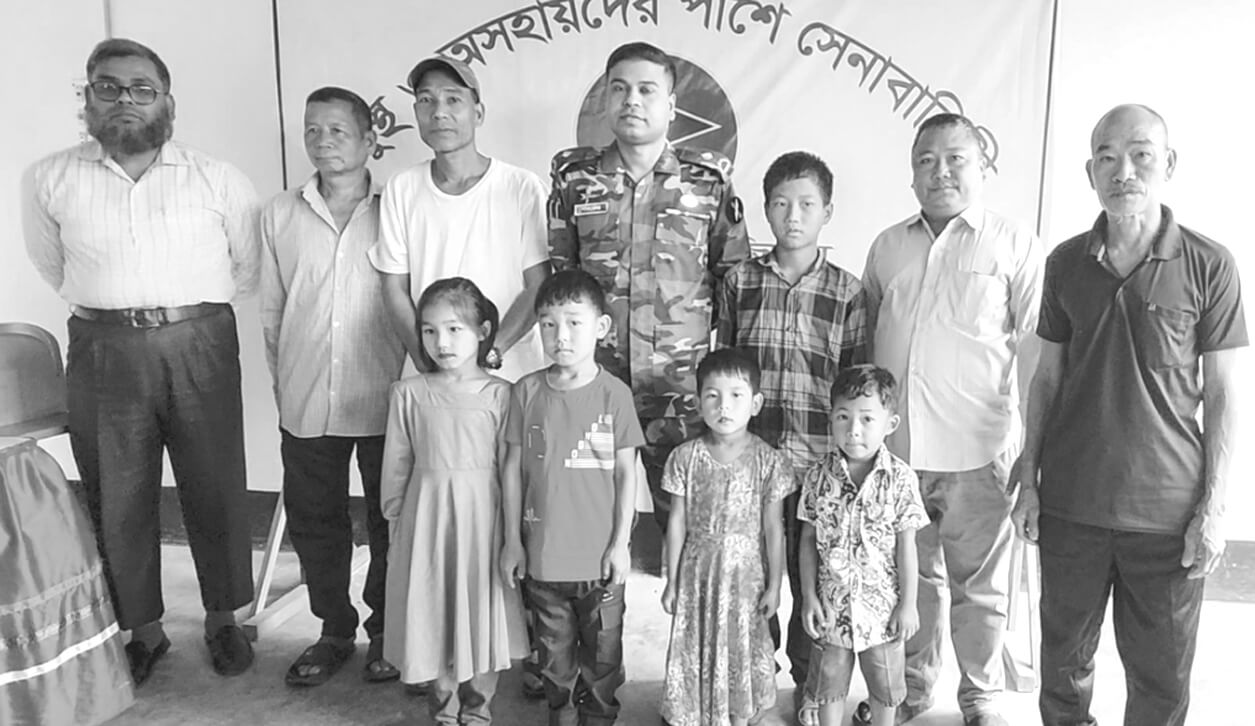বান্দরবানে পাহাড়ের প্রত্যন্ত অঞ্চলের ছয়জন এতিম শিশুর লেখাপড়ার দায়িত্ব নিয়েছে সেনাবাহিনী। সশস্ত্র সন্ত্রাসীদের হাতে রুমা, রোয়াংছড়িসহ বিভিন্ন এলাকায় এসব এতিম শিশুদের অভিভাবকরা নিহত হয়েছেন। এছাড়াও অসুস্থ হয়েও অনেক অভিভাবকের মৃত্যু হয়েছে। গতকাল বুধবার সকালে জেলা সেনানিবাসে শিশুদের অভিভাবকদের হাতে এক বছরের লেখাপড়ার খরচ ও শিক্ষাসামগ্রী তুলে দেয়া হয়। সেনাবাহিনী জানায়, গতকাল বুধবার সকালে বান্দরবান সেনানিবাসে ছয় শিশুর অভিভাবকদের হাতে এক বছরের লেখাপড়ার খরচ ও শিক্ষা সামগ্রী তুলে দেয়া হয়েছে। এ সময় অনুষ্ঠানে উপস্থিত ছিলেন বান্দরবান সেনা রিজিয়নের কর্মকর্তা (জিএসও ২) মেজর পারভেজ রহমান। ২০২৩ সালে বান্দরবানের রোয়াংছড়ির পাইক্ষ্যং পাড়ায় সন্ত্রাসীদের হাতে নিহত হন ক্রীস্টিনা বমের পিতা লাললক লিয়ান বম। আর্থিক সংকটের কারণে চার বছরের শিশুর পড়ালেখা করার কোনো উপায় ছিল না। অন্যদিকে রুমা উপজেলার রনিন পাড়ায় পাঁচ বছর আগে অসুস্থ হয়ে মারা যান লালরাউ সাং এর পিতা। শিশুটির মার বিয়ে হয়ে গেছে আরেক জায়গায়। শিশুটি এখন এতিম তার পড়ালেখাও বন্ধ। স্থানীয়রা জানান সমপ্রতি সেনাবাহিনী বান্দরবানের রিজিয়ন কমান্ডার ব্রিগেডিয়ার জেনারেল রাকিব ইবনে রেজোয়ান এলাকা পরিদর্শনে গেলে এতিম শিশুদের দেখা পান। তিনি তাদের খোঁজ–খবর নেন এবং পড়াশোনার দায়িত্ব নেন।