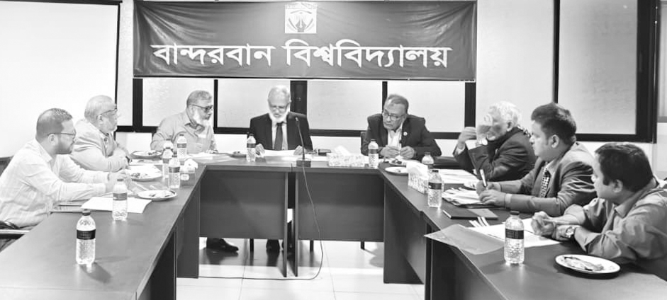 বান্দরবান বিশ্ববিদ্যালয়ের ৬ষ্ঠ সিন্ডিকেট সভা গতকাল শনিবার বিশ্ববিদ্যালয়ের সম্মেলন কক্ষে অনুষ্ঠিত হয়। এতে সভাপতিত্ব করেন বিশ্ববিদ্যালয়ের ভাইস চ্যান্সেলর প্রফেসর ড. মোহাম্মদ মুহিবউল্যাহ ছিদ্দিকী। সভায় উপস্থিত ছিলেন সিন্ডিকেট সদস্য ও ট্রাস্টের সদস্য সচিব ড. মোহাম্মদ নুরুল আবছার, সিন্ডিকেট সদস্য প্রফেসর ড. এম নূরুল ইসলাম, প্রফেসর ড. কাজী আহমেদ নবী ও অধ্যাপক সরওয়ার জাহান, ভারপ্রাপ্ত পরীক্ষা নিয়ন্ত্রক মো. জাহিদুল ইসলাম (আমন্ত্রণক্রমে) এবং সিন্ডিকেটের সদস্য সচিব ও ভারপ্রাপ্ত রেজিস্ট্রার মো. খোরশেদ আলী। সভায় বিশ্ববিদ্যালয়ের একাডেমিক অগ্রগতি, প্রশাসনিক কার্যক্রম ও চলমান উন্নয়নমূলক কর্মকাণ্ডসহ গুরুত্বপূর্ণ বিষয়ে সিদ্ধান্ত গৃহীত হয়। এছাড়া শিক্ষার মানোন্নয়ন ও স্থায়ী ক্যাম্পাসে শিক্ষা কার্যক্রম পুরোপুরি স্থানান্তরসহ ভবিষ্যৎ পরিকল্পনা নিয়েও সিদ্ধান্ত হয়। প্রেস বিজ্ঞপ্তি।