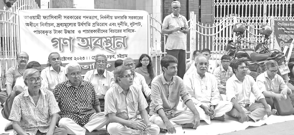 সরকারের পদত্যাগ, নির্দলীয় তদারকি সরকারের অধীনে নির্বাচন, দ্রব্যমূল্যের ঊর্ধ্বগতি প্রতিরোধ এবং দুর্নীতি, লুটপাট, পাচারকৃত টাকা উদ্ধার ও বিচারের দাবিতে চট্টগ্রাম প্রেসক্লাবের সামনে গতকাল বিকাল ৪টা থেকে ৬টা পর্যন্ত অবস্থান কর্মসূচি পালন করেছে বাম গণতান্ত্রিক জোট চট্টগ্রাম জেলা শাখা।