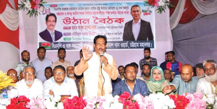 গত মঙ্গলবার নগরীর জামালখান ঝাউতলা এলাকায় চট্টগ্রাম–৯ সংসদীয় আসনের ২১ নং জামালখান ওয়ার্ড বিএনপির উঠান বৈঠকে প্রধান অতিথির বক্তব্যে তিনি এসব কথা বলেন। ওয়ার্ড বিএনপির আহ্বায়ক তৌহিদুস সালাম নিশাতের সভাপতিত্বে ও সদস্য সচিব দিদারুল আলমের সঞ্চালনায় এতে বিশেষ অতিথি ছিলেন নগর বিএনপির সাবেক সহ–সাধারণ সম্পাদক সাহেদ বঙ, মহানগর মহিলা দলের সভাপতি মনোয়ারা বেগম মনি, কোতোয়ালী থানা বিএনপির সাবেক সভাপতি মনজুর রহমান চৌধুরী, মহানগর বিএনপির সাবেক সদস্য এ কে এম আসাদুজ্জামান, ওয়ার্ড বিএনপির যুগ্ম আহবায়ক কাজী শাহজাহান, আবদুল আহাদ স্বপন, কামাল হোসেন, মোস্তাক সালম তালুকদার, মো. মনসুর, দোলন দাশ, মো. সেলিম, মো. আলমগীর, আবু নাছের, আসাদুল ইসলাম সুমন, হারুনুর রশিদ, মো. হাসান, আবু বক্কর চৌধুরী, অ্যাড. আলমগীর চৌধুরী, শাহাদাত হোসেন চৌধুরী, ফারুক হোসেন স্বপন, জুয়েল বড়ুয়া, এস এম শামীম, হাফেজ করিমুল ইসলাম, নূর হোসেন, মো. জিয়া, আকতার খান, আলফু মিয়া, তাসলিমা বেগম, খালেদা বেগম, আলী হোসেন, খলিলুর রহমান, মো. সুমন, ইমরান হোসেন, কিং মোতালেব, মোবারক হোসেন, মো. সাগর, মো. ফোরকান, মো. ফারুক ও মো. টারজেন।