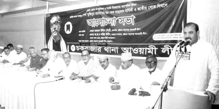 চকবাজার থানা আওয়ামী লীগের সভাপতি সাহাবউদ্দীন আহমেদের সভাপতিত্বে ও সাধারণ সম্পাদক আনছারুল হকের সঞ্চালনায় শোকসভায় আরও বক্তব্য রাখেন সংসদ সদস্য মহিউদ্দিন বাচ্চু, থানা আওয়ামী লীগের মোজাম্মেল হক খোকা, সাইফুল ইসলাম রাসেল, মো. নাজিম উদ্দীন, মো. গিয়াস উদ্দীন, ওয়ার্ড আওয়ামী লীগের সাইফুল আলম বাবু, কামরুল ইসলাম, সাবেক মহিলা কাউন্সিলর আঞ্জুমান আরা বেগম, মহিলা কাউন্সিলর রুমকী সেনগুপ্ত, সৈয়দ রফিকুল ইসলাম, সেলিমুর রহমান, ছাত্রলীগের মজিবুর রহমান রাসেল, জিএম তৌসিফ, জাহিদুল ইসলাম। সভামঞ্চে উপস্থিত ছিলেন মহানগর আওয়ামী লীগের সহসভাপতি নঈম উদ্দীন চৌধুরী, সাংগঠনিক সম্পাদক নোমান আল মাহমুদ এমপি, শফিক আদনান, শফিকুল ইসলাম ফারুক, মো. হোসেন, আবু তাহের, শহীদুল আলম, মহব্বত আলী খান, রেজাউল করিম কায়সার, হারুনুর রশিদ, ফারুক খালেদ চৌধুরী, জাফর আহমদ চৌধুরী প্রমুখ। প্রেস বিজ্ঞপ্তি।