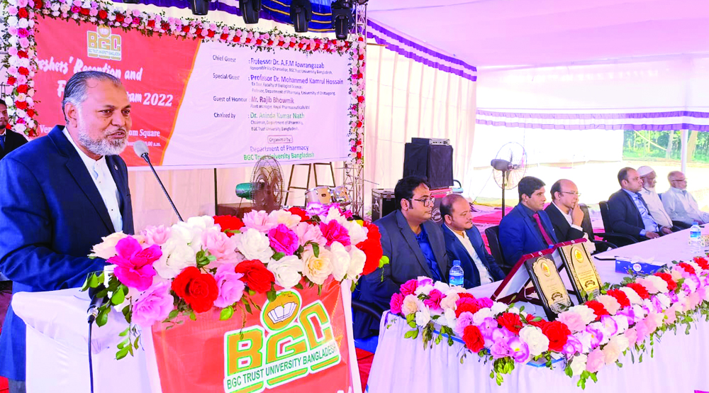 বিজিসি ট্রাস্ট ইউনিভার্সিটির ফার্মাসী বিভাগের নবীন বরণ ও বিদায় সংবর্ধনা গতকাল বৃহস্পতিবার ইউনিভার্সিটির বঙ্গবন্ধু ফ্রিডম স্কোয়ারে বিভাগের চেয়ারম্যান ড. অনিন্দ্য কুমার নাথের সভাপতিত্বে অনুষ্ঠিত হয়। এতে প্রধান অতিথি ছিলেন উপাচার্য প্রফেসর ড. এ.এফ.এম. আওরঙ্গজেব। বিশেষ অতিথি ছিলেন বিভাগের অধ্যাপক প্রফেসর ড. মুহাম্মদ কামরুল হোসাইন। সম্মানিত অতিথি ছিলেন আইন বিভাগের উপদেষ্টা প্রফেসর এ.বি.এম আবু নোমান, রাজিব ভৌমিক। বক্তব্য রাখেন প্রফেসর ড. জাহেদ হোসেন, অধ্যাপক প্রফেসর ড. হযরত আলী মিয়া, ওমর ফারুক রবীন, শিক্ষক মাইকেল দত্ত। বিদায়ী এবং নবাগত ছাত্র-ছাত্রীদের মধ্যে বক্তব্য রাখেন ইসতিয়াক মাহিন, মিনহাজুল ইসলাম, সাদিয়া ইবনা। ভুবন দাশ তরী ও শ্যামা দত্ত কথার সঞ্চালনায় অনুষ্ঠানে উপস্থিত ছিলেন ট্রেজারার প্রফেসর এ.এন.এম ইউসুফ চৌধুরী, প্রফেসর ড. মো. সরওয়ার উদ্দিন, সৌমেন চক্রবর্তী, প্রফেসর মো. আবদুল হান্নান, প্রফেসর মো. ইমরান চৌধুরী, প্রক্টর ড. মো. জিয়া উদ্দিন, ডেপুটি রেজিস্ট্রার সালাহউদ্দিন শাহরিয়ার, শিক্ষক জাহেদ বিন রহিম, ড. তালহা বিন ইমরান, জয়শ্রী দাশ, জুয়েল মল্লিক, শারমিন আকতার, প্রমুখ। প্রেস বিজ্ঞপ্তি।