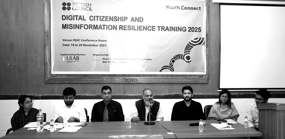 ইউনিভার্সিটি অব লিবারেল আর্টসের (ইউল্যাব) উদ্যোগে, ব্রিটিশ কাউন্সিলের সহযোগিতায় এবং বিজিসি ট্রাস্ট ইউনিভার্সিটির সাংবাদিকতা ও গণমাধ্যম অধ্যয়ন বিভাগের আয়োজনে ৩ দিনব্যাপী ‘ডিজিটাল সিটিজেনশিপ এন্ড মিসইনফরমেশন’ প্রশিক্ষণ কর্মশালা গত ১৮ অক্টোবর অনুষ্ঠিত হয়। জার্নালিজম অ্যান্ড মিডিয়া স্টাডিজ বিভাগের চেয়ারম্যান (ভারপ্রাপ্ত) ইয়াসির সিলমীর সভাপতিত্বে আইকিউএসি কনফারেন্স হলে অনুষ্ঠিত কর্মশালায় প্রধান অতিথি ছিলেন উপাচার্য প্রফেসর ড. এ.এফ.এম. আওরঙ্গজেব। বিশেষ অতিথি ছিলেন রেজিস্ট্রার ড. এস এম শোয়েভ। সম্মানিত অতিথি ছিলেন ডিজিটাল সিটিজেনশিপ এন্ড মিসইনফরমেশনের প্রকল্প সমন্বয়ক মো. রিয়াজ উদ্দিন খান। প্রধান অতিথি বলেন, ডিজিটাল যুগে তথ্যই শক্তি। কিন্তু সেই তথ্য যদি বিভ্রান্তিকর বা উদ্দেশ্যপ্রণোদিতভাবে বিকৃত হয়, তবে তা সমাজ, রাষ্ট্র এবং ব্যক্তি–সব ক্ষেত্রেই মারাত্মক ক্ষতির কারণ হয়ে দাঁড়ায়। আজকের বিশ্বে মিসইনফরমেশন ও ডিসইনফরমেশন শুধু অনলাইন বিভ্রান্তি নয়; এটি সামাজিক স্থিতিশীলতা, নির্বাচন, জনস্বাস্থ্য, অর্থনীতি, এমনকি ব্যক্তিগত নিরাপত্তার ওপরও নেতিবাচক প্রভাব ফেলছে। সাংবাদিকতা বিভাগের শিক্ষার্থীরা যদি শুরু থেকেই ডিজিটাল সিটিজেনশিপ এবং তথ্যসহনশীলতার দক্ষতা অর্জন করতে পারে, তাহলে তারা ভবিষ্যতে সত্য ও নির্ভরযোগ্য তথ্যের একজন দায়িত্বশীল বাহক হিসেবে দেশের উন্নয়নে গুরুত্বপূর্ণ ভূমিকা রাখতে পারবে। বিশেষ অতিথির বক্তব্যে রেজিস্ট্রার ড. এস এম শোয়েভ বলেন, ডিজিটাল প্ল্যাটফর্মগুলো এখন তথ্য পাওয়ার সবচেয়ে সহজ মাধ্যম হলেও, একইসঙ্গে এগুলো সবচেয়ে বেশি ঝুঁকিপূর্ণ হয়ে উঠেছে ভুল ও মনগড়া তথ্যের কারণে। একজন সাংবাদিকের সবচেয়ে বড় শক্তি হলো সত্য যাচাইয়ের ক্ষমতা। আমাদের জার্নালিজম অ্যান্ড মিডিয়া স্টাডিজ বিভাগের শিক্ষার্থীরা যদি শুরু থেকেই ডেটা যাচাই, সোর্স অ্যানালাইসিস, ফ্যাক্টুচেকিং এবং ডিজিটাল লিটারেসিতে দক্ষ হয়ে ওঠে, তাহলে তারা শুধু নিজেদের ক্যারিয়ারেই নয়, দেশের সামগ্রিক তথ্যুনিরাপত্তায় বড় ভূমিকা রাখতে পারবে। তিনদিনের কর্মশালায় অনুষ্ঠানের আহ্বায়ক ও বিভাগের প্রভাষক মুহাম্মদ নঈম উদ্দীনসহ ফ্যাসিলিটেটর হিসেবে উপস্থিত ছিলেন ইউনিভার্সিটি অফ লিবারেট আর্টস–এর জার্নালিজম এন্ড মিডিয়া স্টাডিজ বিভাগের সিনিয়র প্রভাষক মাহমুদ উননবী, ফ্যাক্ট ওয়াচ প্লাটফর্মের ফ্যাক্টচেকার রিদওয়ানুল ইসলাম, সিকিউএসের কমিউনিটি এনগেজমেন্ট অফিসার আর্দ্রিতা কবির। প্রেস বিজ্ঞপ্তি।