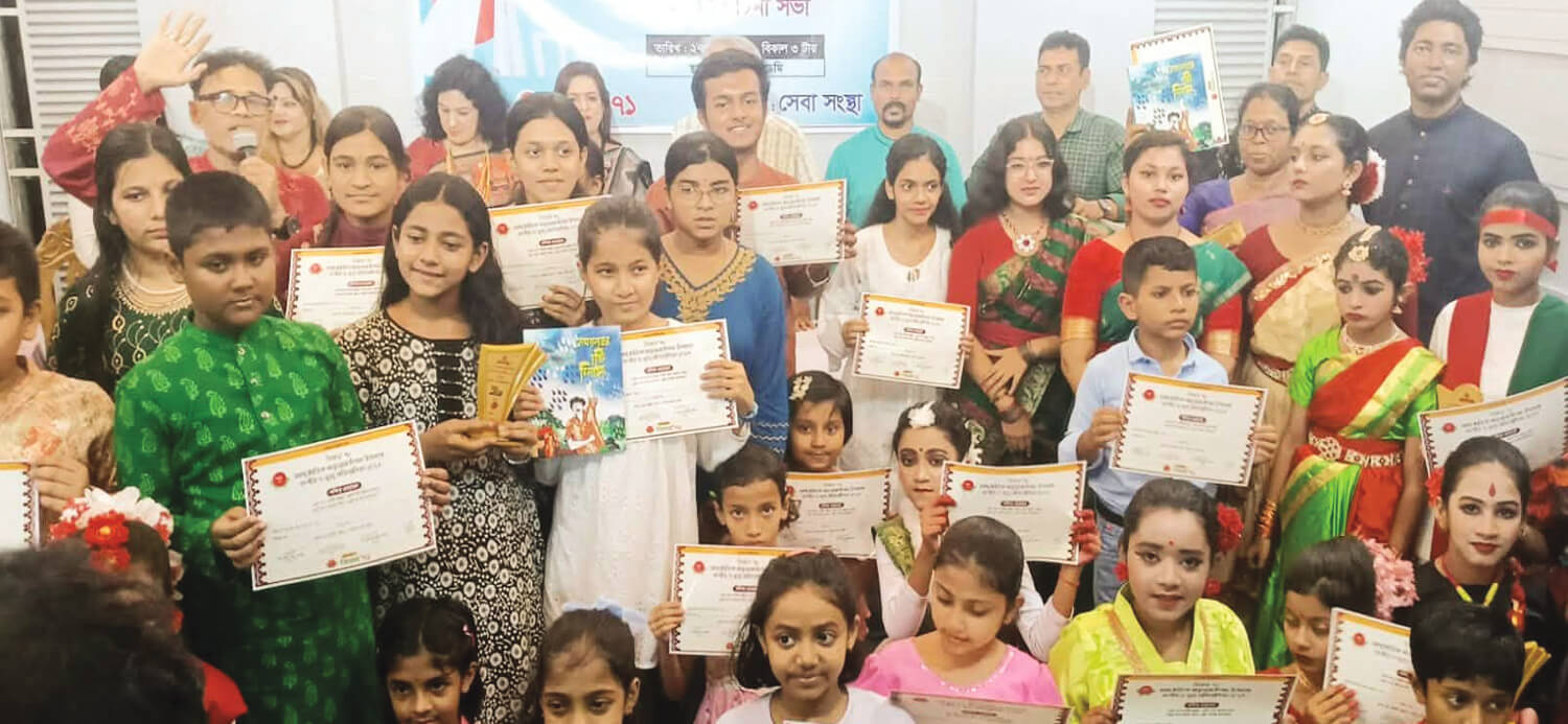 বিজয়’৭১ এর উদ্যোগে সেবা সংস্থার সহযোগিতায় মহান শহীদ দিবস ও আন্তর্জাতিক মাতৃভাষা দিবস উপলক্ষে আলোচনা সভা, সঙ্গীত ও নৃত্য প্রতিযোগিতা গত ২৭ ফেব্রুয়ারি মোমিন রোডস্থ চট্টগ্রাম একাডেমিতে অ্যাড. নীলু কান্তি দাশ নীলমনির সভাপতিত্বে অনুষ্ঠিত হয়। আবৃত্তিশিল্পী সোমা মুৎসুদ্দীর সঞ্চালনায় এতে প্রধান অতিথি ছিলেন বিজয়’৭১ স্থায়ী কমিটির চেয়ারম্যান ডা. মাহফুজুল হক। সংবর্ধিত অতিথি ছিলেন গেরিলা বীর মুক্তিযোদ্ধা ফজল আহমদ। উদ্বোধন করেন বিজয়’৭১ এর সাবেক সভাপতি জসিম উদ্দিন চৌধুরী। প্রধান আলোচক ছিলেন লায়ন ডা. আর. কে রুবেল। বিশেষ আলোচক ছিলেন সাংবাদিক আবছার উদ্দিন অলি। বিচারক ছিলেন তমাল চক্রবর্ত্তী রুবেল, অচিন্ত্য কুমার দাশ, খালেদা আক্তার চৌধুরী, শিমলী চৌধুরী, মম দাশ। বিশেষ অতিথি ছিলেন ফোরকান রাসেল, আনিসুর রহমান ফরহাদ। উপস্থিত ছিলেন শিল্পী অনামিকা তালুকদার, রিটন কান্তি দাশ, শংকর বড়ুয়া, দিলীপ সেন, অরুণ কান্তি চক্রবর্ত্তী, বিজয় দাশ, মীম দাশ,মম দাশ, রাজীব চক্রবর্ত্তী প্রমুখ। বক্তারা বলেন, একুশের চেতনায় উদ্বুদ্ধ হয়ে দেশকে এগিয়ে নিয়ে যেতে হবে। সাংস্কৃতিক চর্চাকে একুশের আলোয় আলোকিত করে বদলে যাওয়া দেশকে ধারণ ও লালন করতে হবে। তরুণ প্রজন্মের মধ্যে বাংলাভাষার চর্চাকে বেগবান করে তুলতে সম্মিলিত ভাবে কাজ করে যেতে হবে।