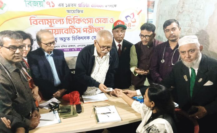 বিজয়’৭১ এর প্রতিষ্ঠাবার্ষিকী উপলক্ষে ৩দিন ব্যাপী কর্মসূচির অংশ হিসেবে গতকাল শনিবার নগরীর গোয়ালপাড়া ব্রজধাম মন্দির প্রাঙ্গণে ফ্রি চিকিৎসা ক্যাম্প অনুষ্ঠিত হয়। এতে সভাপতিত্ব করেন মুক্তিযোদ্ধা ফজল আহমেদ। উদ্বোধন করেন বীর মুক্তিযোদ্ধা গবেষক ড. মাহফুজুর রহমান। প্রধান আলোচক ছিলেন সংগঠনের প্রতিষ্ঠাতা ডা. আর. কে রুবেল। বিশেষ অতিথি ছিলেন মুক্তিযোদ্ধা নীল রতন দাশ গুপ্ত, মুক্তিযোদ্ধা ডা. মুজিবুল হক চৌধুরী, জাফর ইকবাল, সাংবাদিক আবছার উদ্দিন অলি। আবৃত্তি শিল্পী সোমা মুৎসুদ্দীর সঞ্চালনায় এতে বক্তব্য রাখেন সংগঠনের সাধারণ সম্পাদক ডা. অপূর্ব ধর, শিমুল দাশ,প্রদীপ দাশ, রিপন দাশ, উজ্জ্বল দাশ, রাশু দাশ, স্বপন দাশ ও শিল্পী সমীরন পাল প্রমুখ। প্রেস বিজ্ঞপ্তি।