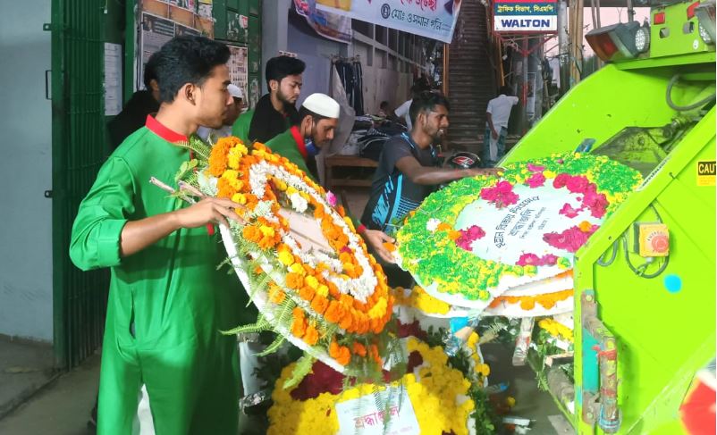 বিকেল বেলা হঠাৎ লাল-সবুজ পাঞ্জাবি পড়া কয়েকজন তরুণ আসে শহীদ মিনারে৷ প্রথমে ফুল দিয়ে শ্রদ্ধা জানান শহীদদের প্রতি। কিছুক্ষণ অপেক্ষা করেন তারা। চট্টগ্রাম সিটি কর্পোরেশনের গাড়ি আসতেই তারা লেগে পড়েন কাজে। সিটি কর্পোরেশনের কাজে সহায়তা করতে থাকেন তারা। গাট্টি করে ফুলের স্তবকগুলোকে তুলে দেন সিটি কর্পোরেশনের গাড়িতে। এসকল তরুণরা নিজেদের সামাজিক সংগঠন দূর্বার তারুণ্য এর সেচ্ছাসেবক হিসেবে পরিচয় দেন।
