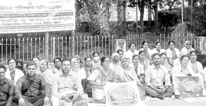 বাঁশখালী : বাঁশখালী প্রতিনিধি জানান, বাঁশখালীতে পরিবার পরিকল্পনা কর্মচারীদের নিয়োগবিধি দ্রুত বাস্তবায়নের দাবিতে কর্মবিরতি ও অবস্থান কর্মসূচি পালন করা হয়। গতকাল মঙ্গলবার নিয়োগবিধি দ্রুত বাস্তবায়নের দাবিতে উপজেলা পরিবার পরিকল্পনা কার্যালয়ের সামনে অবস্থান কর্মসূচিতে অংশ নেন পরিবার কল্যাণ পরিদর্শিকা, পরিবার পরিকল্পনা পরিদর্শক ও পরিবার কল্যাণ সহকারীরা।পরিবার পরিকল্পনা বিভাগের নিয়োগবিধি বাস্তবায়নের দাবিতে ১০ দিনের কর্মবিরতি ও অবস্থান কর্মসূচি ঘোষণা করেছে পরিবার পরিকল্পনা অধিদপ্তরের কর্মীরা। যা ২ ডিসেম্বর থেকে ১১ ডিসেম্বর পর্যন্ত এ চলবে। একইসঙ্গে তারা পরিবার পরিকল্পনা সেবা ও প্রচার সপ্তাহ বর্জনের ঘোষণা দিয়েছেন।