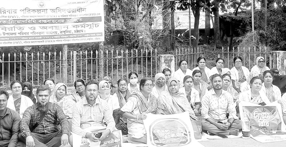 রাঙ্গুনিয়া : রাঙ্গুনিয়া প্রতিনিধি জানান, রাঙ্গুনিয়ায় পরিবার পরিকল্পনা অধিদপ্তরের পরিবার কল্যাণ পরিদর্শিকা, পরিবার কল্যাণ সহকারী ও পরিবার পরিকল্পনা পরিদর্শকদের দ্রুত নিয়োগবিধি বাস্তবায়নের দাবিতে কর্ম বিরতি ও অবস্থান কর্মসূচি উপজেলা স্বাস্থ্য ও পরিবার পরিকল্পনা কার্যালয় প্রাঙ্গণে অনুষ্ঠিত হচ্ছে। দাবি আদায়ে কেন্দ্র ঘোষিত কর্মসূচির অংশ হিসেবে গত ১ ডিসেম্বর থেকে মাসিক রিপোর্ট বন্ধ করে দেয়া হয় এবং ২ থেকে আগামী ১১ ডিসেম্বর পর্যন্ত কর্মবিরতি কর্মসূচি পালন করছেন তারা। কর্মসূচি অব্যাহত থাকলে আগামী ৬ থেকে ১১ ডিসেম্বর পর্যন্ত পরিবার পরিকল্পনা বিভাগের জাতীয় সেবা সপ্তাহ ব্যাহত হওয়ার আশংকা রয়েছে।