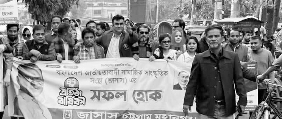 গতকাল বাংলাদেশ জাতীয়তাবাদী সামাজিক সাংস্কৃতিক সংস্থা জাসাসের ৪৭তম প্রতিষ্ঠাবার্ষিকী উপলক্ষে চট্টগ্রাম মহানগর জাসাস বিভিন্ন কর্মসূচির পালন করে। শহীদ প্রেসিডেন্ট জিয়াউর রহমানের স্মৃতিবিজড়িত নগরীর ২নং গেট বিপ্লব উদ্যানে পুষ্পস্তবক অর্পণ ও বেলুন উড়িয়ে অনুষ্ঠান শুরু হয়। এতে প্রধান অতিথি হিসেবে উপস্থিত ছিলেন জাসাস জাতীয় নির্বাহী কমিটির সদস্য ও দক্ষিণ জেলা বিএনপির আহবায়ক কমিটির সদস্য আমিনুল ইসলাম। বর্ণাঢ্য র্যালি শেষে নগর জাসাসের আহ্বায়ক লায়ন এম এ মুছা বাবলের সভাপতিত্বে সংক্ষিপ্ত সমাবেশ ও দোয়া মাহফিল অনুষ্ঠিত হয়। দোয়া মাহফিলে দেশনেত্রী বেগম খালেদা জিয়ার সুস্থতা, বিএনপির ভারপ্রাপ্ত চেয়ারপার্সন তারেক রহমানের দীর্ঘায়ু ও দেশের কল্যাণ কামনা করে দোয়া করা হয়। এই সময় উপস্থিত ছিলেন নগর জাসাসের সিনিয়র যুগ্ম আহবায়ক দোস্ত মোহাম্মদ, যুগ্ম আহ্বায়ক সৈয়দ জিয়াউদ্দিন জিয়া, মহিন উদ্দিন মহিন, নজরুল ইসলাম তুহিন, মো: আবুল কালাম, মহিউদ্দিন জুয়েল, মোহাম্মদ তারেক, সেলিম ইকবাল, লায়ন আব্দুল মান্নান ভূঁইয়া, ফরিদুল আলম মিললাদ, জাহেদ কায়সার, কণ্ঠশিল্পী মেহেদী হাসান, শরীফ মোহাম্মদ গোলাম কিবরিয়া, মোহাম্মদ জহির, মোঃ নাসির, আশরাফ হোসেন মুক্তার, মোহাম্মদ সায়েদ, নাহিদা আখতার নাজু, নাহিদা আলম, এস বি সুমি, পারু, নিগার সোহা, আব্দুল হান্নান শিবলি, সাইদুর রহমান মিন্টু, সাইদুল বিপলু, মেহেদী হাসান, রাজন, শওকত, রাসেল মোস্তফাফিজ, নোমান, রনিসহ বিভিন্ন থানা নেতৃবৃন্দ উপস্থিত ছিলেন। প্রেস বিজ্ঞপ্তি।
