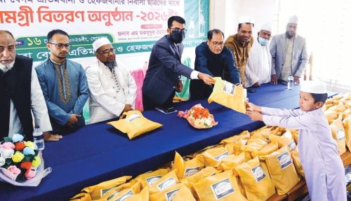 উম্মুল আশেকীন মুনাওয়ারা বেগম এতিমখানা: উম্মুল আশেকীন মুনাওয়ারা বেগম এতিমখানা ও হেফজখানার উদ্যোগে আসন্ন পবিত্র ঈদুল ফিতরের আনন্দকে সবার মাঝে ছড়িয়ে দেওয়ার জন্য ছাত্রদের মাঝে গতকাল সোমবার ঈদ উপহার বিতরণ হয়। প্রতিষ্ঠানের পরিচালনা পরিষদের কোষাধ্যক্ষ এম মকসুদুর রহমানের সভাপতিত্বে এবং সাধারণ সম্পাদক আনোয়ার হোসেন সিকদারের সঞ্চালনায় ফটিকছড়ি রোসাংগীরি ইউনিয়নের আজিমনগরস্থ আবাসিক ভবনে অনুষ্ঠিত হয়। এতে প্রধান অতিথি ছিলেন ফটিকছড়ি উপজেলা সহকারী সমাজসেবা অফিসার মোহাম্মদ আমিন উল্যাহ। বিশেষ অতিথি ছিলেন কার্যনির্বাহী সদস্য সৈয়দ মোরশেদুল আমিন, কার্য নির্বাহী সদস্য জালাল উদ্দিন, সদস্য ইঞ্জিনিয়ার রিয়াদ মোর্শেদ, অধ্যক্ষ আবুল কাশেম, উপাধ্যক্ষ মাওলানা মুঈনুদ্দীন। প্রধান অতিথি বলেন, ঈদ মানেই শুধু নতুন পোশাক নয়, ঈদ মানে আনন্দ ভাগাভাগি করা, ভালোবাসা ছড়িয়ে দেওয়া। সমাজে আর্থিকভাবে পিছিয়ে পড়া মানুষের মুখে হাসি ফোটানোর মধ্যে ঈদের প্রকৃত আনন্দ নিহীত। এতে উপস্থিত ছিলেন শাফায়াত হোসেন, মুজিবুল হক, হাফেজ ইরফান, হাফেজ মহিউদ্দীন, হাফেজ আবু হানিফ, শিক্ষক রবিউল হোসেন প্রমুখ। কোরআন তেলাওয়াত করেন হাফেজ ইসলাম সামির।
