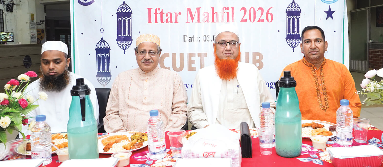 চুয়েট ক্লাব : চুয়েট শিক্ষক ও কর্মকর্তাদের সংগঠন চুয়েট ক্লাবের ইফতার মাহফিল গত ৩ মার্চ চুয়েটের টিএসসিতে অনুষ্ঠিত হয়। এতে প্রধান অতিথি ছিলেন ভাইস–চ্যান্সেলর অধ্যাপক ড. মাহমুদ আব্দুল মতিন ভূইয়া। সভাপতিত্ব করেন ক্লাবের সভাপতি ও রসায়ন বিভাগের অধ্যাপক ড. এ.এইচ. রাশেদুল হোসেন। উপস্থিত ছিলেন সাধারণ সম্পাদক ও বায়োমেডিক্যাল ইঞ্জিনিয়ারিং বিভাগ এর বিভাগীয় প্রধান অধ্যাপক ড. নিপু কুমার দাশ। দোয়া ও মোনাজাত পরিচালনা করেন মাওলানা মুহাম্মদ মফিজুর রহমান।