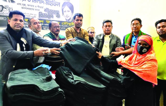 লোহাগাড়া উপজেলা বিএনপি: দক্ষিণ জেলা বিএনপির সদস্য ফৌজুল কবির ফজলু বলেছেন, যে কোন দুর্যোগ–দুর্বিপাকে বিএনপি সব সময় জনগণের পাশে থাকে। তারা সরকার বা বিরোধী দল যে অবস্থানেই থাকেন সব সময় জনতার পাশে থাকেন। আগামীতেও সর্বশক্তি দিয়ে জনগণের পাশে থাকবেন তারা। তিনি আরো বলেন,শহীদ জিয়া এদেশের বহুদলীয় গণতন্ত্রের প্রবক্তা। এদেশের কৃষক,শ্রমিক ও সাধারণ মানুষের মুক্তির দিশারী। তিনি গতকাল বুধবার আমিরাবাদ ইউনিয়নের মল্লিক ছোবহান এলাকায় বায়তুল কোরআন মাদ্রাসা সংলগ্ন মাঠে অসহায় ও শীতার্ত মানুষের মাঝে ৬ নাম্বার ওয়ার্ড বিএনপি, অঙ্গ ও সহযোগী সংগঠনের উদ্যোগে শীত বস্ত্র বিতরণ অনুষ্ঠানে প্রধান অতিথির বক্তব্যে এসব কথা বলেন। আমিরাবাদ ইউনিয়ন বিএনপি নেতা নুরুল আলম কোম্পানীর সভাপতিত্বে অনুষ্ঠানে প্রধান বক্তা ছিলেন দক্ষিণ জেলা যুবদলের সহ–সভাপতি আবু সেলিম চৌধুরী। বিশেষ অতিথি ছিলেন উপজেলা যুবদলের সাবেক সদস্য সচিব আবু তালেব রুবেল, যুগ্ম আহবায়ক গিয়াস উদ্দিন চৌধুরী। কফিল উদ্দিনের সসঞ্চালনায় অনুষ্ঠানে বক্তব্য রাখেন সাহাব উদ্দিন সওদাগর, বাহাদুর চৌধুরী, কায়েস উদ্দিন, লতিফুর রহমান, সাইমুন সেলিম, নাজিম উদ্দিন, মো. বাচ্চু, বেলাল উদ্দিন, জহির উদ্দিন, মিজানুর রহমান, কুতুব উদ্দিন মামুন প্রমুখ।