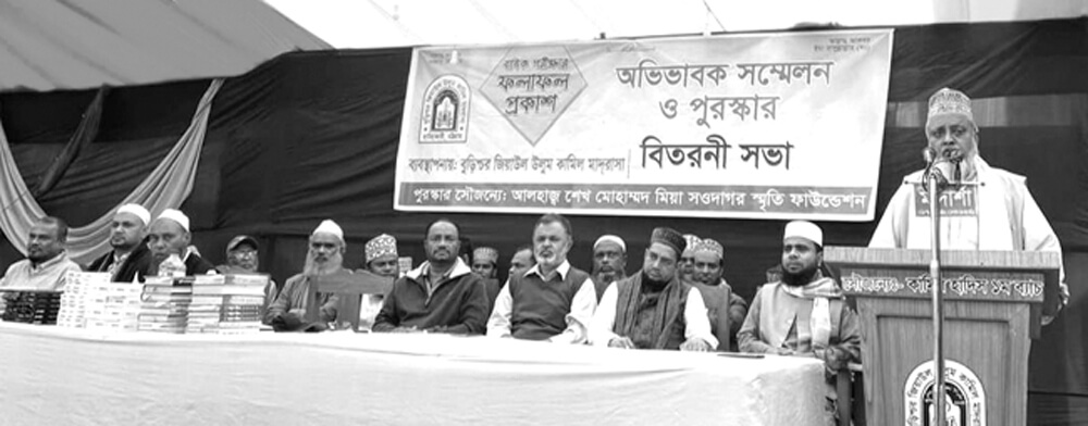 গতকাল শনিবার সকাল দশটায় বুড়িশ্চর জিয়াউল উলুম কামিল মাদ্রাসার বার্ষিক পরীক্ষার ফলাফল প্রকাশ উপলক্ষে আলহাজ্ব শেখ মোহাম্মদ মিয়া সওদাগর স্মৃতি ফাউন্ডেশনের সৌজন্যে আয়োজিত কৃতী শিক্ষার্থী সংবর্ধনা ও অভিভাবক সমাবেশে সভাপতির বক্তব্যে অধ্যক্ষ আল্লামা সৈয়দ মোহাম্মদ ফরিদ উদ্দিন এ কথা বলেন। মাস্টার নাছির উদ্দিনের সঞ্চালনায় আয়োজিত অনুষ্ঠানে প্রধান অতিথি ছিলেন বুড়িশ্চর জিয়াউল উলুম কামিল মাদ্রাসার প্রতিষ্ঠাতা সদস্য শেখ মোহাম্মদ ইউসুফ। স্বাগত বক্তব্য রাখেন পরীক্ষা কমিটির চেয়ারম্যান অধ্যাপক শেখ ফয়জুল্লাহ আহমদ। বিশেষ অতিথির বক্তব্য দেন বুড়িশ্চর জিয়াউল উলুম জায়তুন নুর এতিমখানার সভাপতি মোহাম্মদ ওয়াসিম রেজা। অন্যান্যদের মধ্যে অংশ নেন মোহাম্মদ লোকমান হাকিন মেম্বার, হাজী নাসির উদ্দিন, মনজুরুল কাদের, আবু তাহের ফারুকী, সাইদুল ইসলাম পাটোয়ারী, শওকতুল ইসলাম, আরিফ উল্লাহ, আরমান উল্লাহ, তোফাজ্জল হোসেন, আব্দুল নুর, রুহুল কাদের চৌধুরী, এ এইচ এম সৈয়দ নুর, মাসুদ পারভেজ,আবু তাহের নূরী, মারুফুল ইসলাম, আব্দুল আজিজ, কামাল উদ্দিন প্রমূখ। পরিশেষে বার্ষিক পরীক্ষায় কৃতিত্ব অর্জনকারী কৃতী শিক্ষার্থী ও তাদের অভিভাবকদের হাতে পুরস্কার তুলে দেয়া হয়। প্রেস বিজ্ঞপ্তি।