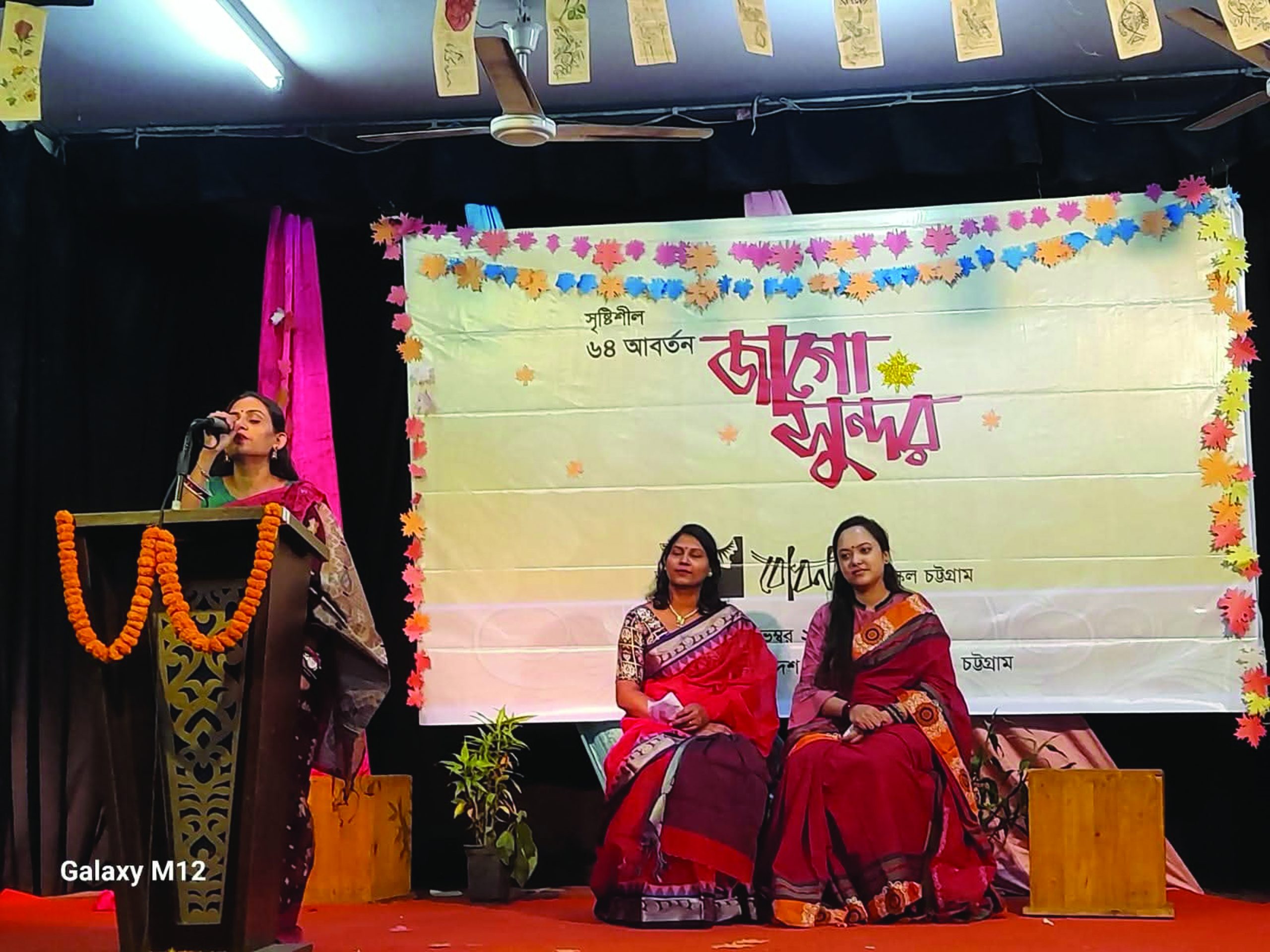 চট্টগ্রাম জেলা শিল্পকলা একাডেমির গ্যালারি হলে গত ২১ নভেম্বর বোধনের সৃষ্টিশীল ৬৪ আবর্তনের জাগো সুন্দর অনুষ্ঠিত হয়েছে। জাগো সুন্দরে মূল্যায়নে বিচারক ছিলেন ইসমাইল চৌধুরী সোহেল। স্বাগত বক্তব্য দেন, বোধনের সাধারণ সম্পাদক এস এম আব্দুল আজিজ। সঞ্চালনায় ছিলেন ঋত্বিকা নন্দী ও হাসিবুল ইসলাম শাকিল। কবিতার চর্চায় আলোর বুননের গল্প ও কবিতা শোনান বোধনের সহ সভাপতি সুবর্ণা চৌধুরী, সাংগঠনিক সম্পাদক গৌতম চৌধুরী, প্রচার ও প্রকাশনা সম্পাদক বিপ্লব কুমার শীল, সংগীতা কর চৌধুরী, শুভ রক্ষিত, পল্লব গুপ্ত, সাজ্জাদ চৌধুরী, শর্মিলা বড়ুয়া, শংকর প্রসাদ নাথ, শ্রাবণী বড়ুয়া, ত্রয়ী দে প্রমুখ। আয়োজনের সমন্বয়ে ছিলেন সুচয়ন সেনগুপ্ত। প্রেস বিজ্ঞপ্তি।
