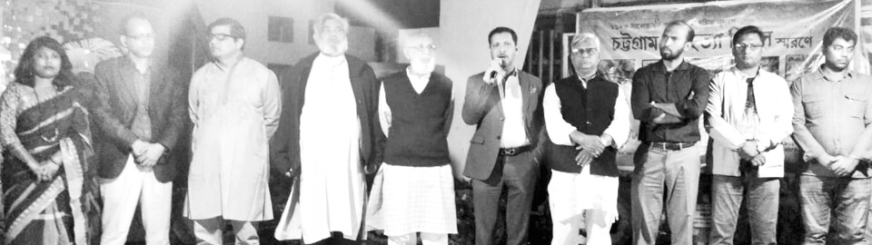 শুরুতে ১ মিনিট নীরবতা পালন করা হয়। শহীদ মিনারে পুষ্পার্ঘ্য অর্পণ করে শ্রদ্ধা জানানো হয়। সাধারণ সম্পাদক প্রণব চৌধুরীর সঞ্চালনায় সভাপতি আবদুল হালিম দোভাষের সভাপতিত্বে বক্তব্য দেন, বিজিএমইএর প্রথম সহ সভাপতি সৈয়দ নজরুল ইসলাম, বীর মুক্তিযোদ্ধা মোহাম্মদ ইউনুস, অ্যাড. ইব্রাহিম হোসেন চৌধুরী বাবুল, অ্যাড. সুস্বপন কৃষ্ণ বিশ্বাস, পান্টু লাল সাহা, নাট্যকার দীপক চৌধুরী, মোহাম্মদ আবুল মনজুর, মসরুর হোসেন।