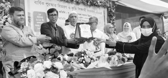 বোয়ালখালীতে হাজি মোহাম্মদ জানে আলম উচ্চ বিদ্যালয়ের কৃতী শিক্ষার্থী সংবর্ধনা ও বার্ষিক পুরস্কার বিতরণী অনুষ্ঠিত হয়েছে। গত মঙ্গলবার বিদ্যালয়ের মাঠে আয়োজিত এ অনুষ্ঠানে বার্ষিক ক্রীড়া প্রতিযোগিতায় বিজয়ীদের পাশাপাশি এসএসসি ও বার্ষিক পরীক্ষায় কৃতিত্বপূর্ণ ফল অর্জনকারী শিক্ষার্থীদের হাতে পুরস্কার তুলে দেওয়া হয়। বিদ্যালয় পরিচালনা কমিটির সভাপতি শাহিদা শারমিনের সভাপতিত্বে অনুষ্ঠানে প্রধান অতিথি ছিলেন উপজেলা মাধ্যমিক শিক্ষা কর্মকর্তা (ভারপ্রাপ্ত) সালমা ইসলাম। বিদ্যালয়ের সহকারি প্রধান শিক্ষক প্রবীর কান্তি মজুমদার ও সহকারি শিক্ষক মনছুর আলীর পরিচালনায় ও প্রধান শিক্ষক মোঃ নুরুল হাকিমের সার্বিক সহযোগিতায় বিশেষ অতিথি ছিলেন বিদ্যালয়ের আজীবন দাতা সদস্য আবুল বশর, মোসাম্মদ হাসিনা আক্তার, মোঃ তৈয়বুল আলম, ডা. মোঃ জাহিদুল ইসলাম জয়, বোয়ালখালী প্রেসক্লাবের সভাপতি সিরাজুল ইসলাম, এস এম ইকবাল, নিজাম ফারুক, মোঃ নুরুল কবির, নাছির উদ্দীন, মোঃ বাদশা, আনোয়ার হোসেন প্রমুখ। এছাড়াও আয়োজনে বিদ্যালয়ের শিক্ষক, কর্মকর্তা, শিক্ষার্থী ও অভিভাবকরা উপস্থিত হয়ে অনুষ্ঠানকে আনন্দমুখর করে তোলেন। অনুষ্ঠানে বক্তারা বলেন, প্রতিবছরের ধারাবাহিকতায় এবারও কৃতী শিক্ষার্থীদের হাতে পুরস্কার তুলে দিতে পেরে তারা অত্যন্ত আনন্দিত। পাশাপাশি সহশিক্ষা কার্যক্রমে বিশেষ অবদান রাখা শিক্ষার্থীদের সংবর্ধনাও প্রদান করা হয়। সংশ্লিষ্টরা বলেন শিক্ষার্থীদের মেধা, মনন, নৈতিক মূল্যবোধ ও আত্মবিশ্বাস বিকাশে এ আয়োজন গুরুত্বপূর্ণ ভূমিকা রাখবে। প্রেস বিজ্ঞপ্তি।