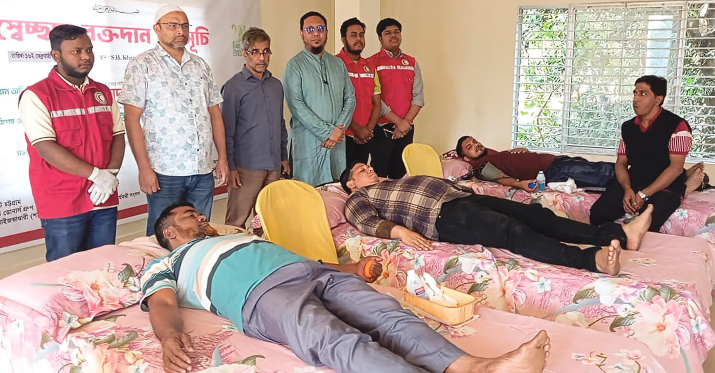 চট্টগ্রাম জেলা কার্যকরী সংসদের উদ্যোগে এবং সৈয়দুল হক ট্রাস্টের ব্যবস্থাপনায় চরণদ্বীপ দায়রা শাখা প্রাঙ্গণে কর্মসূচিতে সর্বমোট ৩৩ ব্যাগ রক্ত সংগ্রহ করা হয়। এ কর্মসূচিতে সার্বিক সহযোগিতা প্রদান করে রেড ক্রিসেন্ট সোসাইটি–চট্টগ্রাম, মাইজভাণ্ডারী শাহ্ এমদাদীয়া ব্লাড ডোনার্স গ্রুপ ও চরণদ্বীপ দায়রা শাখা। সংশ্লিষ্টরা জানান, সংগৃহীত রক্ত বিভিন্ন হাসপাতাল ও জরুরি চিকিৎসাসেবায় ব্যবহৃত হবে। আসন্ন রমজানে দেশে রক্তের সংকট মোকাবিলায় গত এক মাসে মোট ১৭৬ ব্যাগ রক্ত সংগ্রহ করা হয়। মুহাম্মদ সেলিম উদ্দীনের সভাপতিত্বে অনুষ্ঠিত কর্মসূচিতে প্রধান অতিথি হিসেবে ভার্চুয়ালি বক্তব্য রাখেন নায়েব সাজ্জাদানশীন আলহাজ সৈয়দ ইরফানুল হক মাইজভাণ্ডারী। অতিথি ছিলেন খান এগ্রো গ্রুপের ব্যবস্থাপনা পরিচালক আলহাজ সৈয়দুল হক খান (ভার্চুয়াল), চট্টগ্রাম রেড ক্রিসেন্ট রক্তদান কেন্দ্রের ইনচার্জ ডা. মুহাম্মদ মিসবাহ উদ্দীন, সংগঠনের চট্টগ্রাম জেলা কার্যকরী সংসদের সাধারণ সম্পাদক শেখ শাকিল মাহমুদ। উপস্থিত ছিলেন মুহাম্মদ আবদুল করিম, মুহাম্মদ আবদুল কাদের জাবেদ প্রমুখ। প্রধান অতিথি সৈয়দ ইরফানুল হক মাইজভাণ্ডারী বলেন, মানবকল্যাণ অন্যতম ইবাদত। মানুষের দুঃখ লাঘবের মধ্যেই আল্লাহর সন্তুষ্টি নিহিত। গাউছুল আজম মাইজভাণ্ডারীর মানবকল্যাণের শিক্ষা সমাজে ভালোবাসা, সহমর্মিতা ও আত্মত্যাগের চর্চা জাগ্রত করে। বক্তারা বলেন, একজন রক্তদাতার এক ব্যাগ রক্ত একজন অসুস্থ মানুষের জীবন বাঁচাতে পারে–এটি শুধু দান নয়, এটি মানবতার শ্রেষ্ঠ প্রকাশ। বিশেষ করে পবিত্র রমজান মাসে রোজার কারণে স্বেচ্ছায় রক্তদানের হার কমে যাওয়ায় দেশে রক্তের ঘাটতি দেখা দেয়। এমন সময়ে এই উদ্যোগ জরুরি অপারেশন, দুর্ঘটনাজনিত রোগী, প্রসূতি মা এবং থ্যালাসেমিয়াসহ দীর্ঘমেয়াদি রোগে আক্রান্ত রোগীদের চিকিৎসায় গুরুত্বপূর্ণ সহায়তা প্রদান করবে। আয়োজকরা ভবিষ্যতেও নিয়মিতভাবে রক্তদান কর্মসূচিসহ বিভিন্ন জনকল্যাণমূলক কার্যক্রম পরিচালনার অঙ্গীকার ব্যক্ত করেন এবং সমাজের সর্বস্তরের মানুষকে এ ধরনের মানবসেবামূলক উদ্যোগে অংশগ্রহণের আহ্বান জানান। প্রেস বিজ্ঞপ্তি।