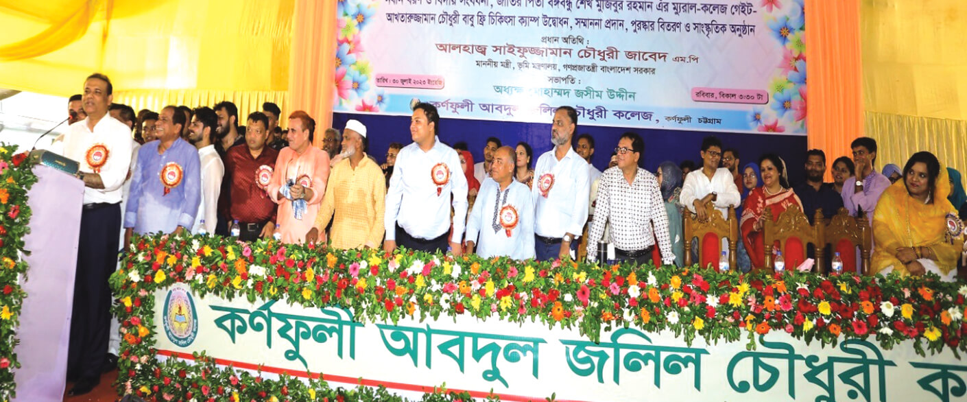 বিএনপিকে ভাঁওতাবাজির রাজনীতি বন্ধ করতে বললেন ভূমিমন্ত্রী সাইফুজ্জামান চৌধুরী জাবেদ। তিনি বলেন, মাঠ আওয়ামী লীগের দখলে, সাধারণ মানুষের দখলে, গণতন্ত্র নিয়ে বিএনপিকে ভাবতে হবে না। বাংলাদেশ বিশ্বের বাইরের দেশ নয়। সাড়ে ১৪ বছরে দেশ অনেক এগিয়ে গেছে। বিএনপির আমলে দেশে কোন উন্নতি হয়নি, দেশকে আবার তারা হাওয়া ভবনে নিয়ে যেতে চাই। মন্ত্রী বলেন, এক বিন্দু রক্ত থাকতেও গণতন্ত্রকে আমরা ধরে রাখবো, দেশ এখন নিরাপদে আছে, শেখ হাসিনার হাতে দেশ নিরাপদ না থাকলে কারও হাতে দেশ নিরাপদে থাকবেনা। দেশে শেখ হাসিনার কোন বিকল্প নেই। গত ৩০ জুলাই কর্ণফুলী আবদুল জলিল চৌধুরী কলেজে নবীন বরণ ও বিদায় সংবর্ধনা, জাতির পিতা বঙ্গবন্ধু শেখ মুজিবুর রহমানের ম্যুরাল, আখতারুজ্জামান চৌধুরী বাবু ফ্রি চিকিৎসা ক্যাম্প উদ্বোধন এবং সম্মাননা ও পুরস্কার বিতরণী অনুষ্ঠানে তিনি এসব কথা বলেন। তিনি বলেন, শিক্ষায় জাতির মেরুদন্ড, শিক্ষা ছাড়া লক্ষ্যে পৌছানো যায় না। আগামী নির্বাচনের সম্ভব না হলে নির্বাচনের পরে কর্ণফুলী আবদুল জলিল চৌধুরী কলেজ সরকারীকরণ হবে ইনশাআল্লাহ। যেখানে কর্ণফুলীকে একটি উপজেলায় পরিনত করেছি, সেখানে কলেজ সরকারি করণ তেমন ব্যাপার হবে না। তিনি নবীন ও বিদায়ী শিক্ষার্থীদের মুক্তিযুদ্ধের সঠিক ইতিহাস অনুধাবন করে মাদকমুক্ত, সন্ত্রাসমুক্ত, অসম্প্রদায়িক জাতি গঠনে ভূমিকা রাখার জন্য আহবান করেছেন। অধ্যক্ষ মোহাম্মদ জসীম উদ্দীনের সভাপতিত্বে ও অধ্যাপক শামীমা আকতার চৌধুরীর সঞ্চালনায় সভায় বক্তব্য রাখেন কর্ণফুলী উপজেলা পরিষদের চেয়ারম্যান আলহাজ ফারুক চৌধুরী, উপজেলা নির্বাহী কর্মকর্তা (ভারপ্রাপ্ত) পিযুষ কুমার চৌধুরী, কর্ণফুলী উপজেলা আওয়ামীলীগের সাধারণ সম্পাদক সোলায়মান তালুকদার, দক্ষিণ জেলা যুবলীগের সভাপতি মো. দিদারুল ইসলাম চৌধুরী, উপজেলা পরিষদের ভাইস চেয়ারম্যান আমির আহমেদ, মহিলা ভাইস চেয়ারম্যান ডা. ফারহানা মমতাজ, মো. নজরুল ইসলাম চৌধুরী, মো. ফোরকান উদ্দীন, সৈয়দ জালাল আহমদ রুম্মান, মো. জাফর ইকবাল, মো. ইলিয়াছ, এইচ এম হারুন অর রশিদ , অধ্যাপক নাজমা বেগম, অধ্যাপক ইন্দ্রজিত কর, অধ্যাপক নাজনীন সুলতানা, এইচ এম আবু ওবাইদা, উপাধ্যক্ষ সমীর রঞ্জন নাথ, অধ্যাপক মো. শফিকুর রশীদ। প্রধান অতিথি পুষ্পস্তবক দিয়ে নবীনদেরকে বরণ করে নেন এবং বিদায়ীদের দোয়া ও শুভেচ্ছা জানান। কৃতী শিক্ষার্থীদের সম্মাননা প্রদান করেন। শেষে সাংস্কৃতিক অনুষ্ঠান পরিবেশিত হয়। প্রেস বিজ্ঞপ্তি।