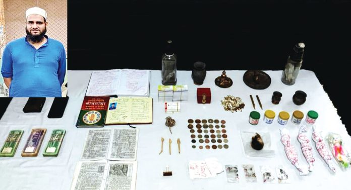 ভাগ্যে মূল্যবান গুপ্তধন আছে এবং তা উদ্ধারের কথা বলে টাকা হাতিয়ে নেয়ার দায়ে এক কবিরাজকে গ্রেপ্তার করেছে র্যাব। এক ভোক্তভোগীর অভিযোগের ভিত্তিতে গত মঙ্গলবার হালিশহরের বৌ বাজার এলাকা থেকে মো. ইব্রাহীম হোসেন প্রকাশ কবিরাজ ইব্রাহীম নামের ওই লোককে গ্রেপ্তার করা হয়। এ সময় প্রতারণার কাজে ব্যবহৃত বিভিন্ন সরঞ্জাম জব্দ করা হয়।