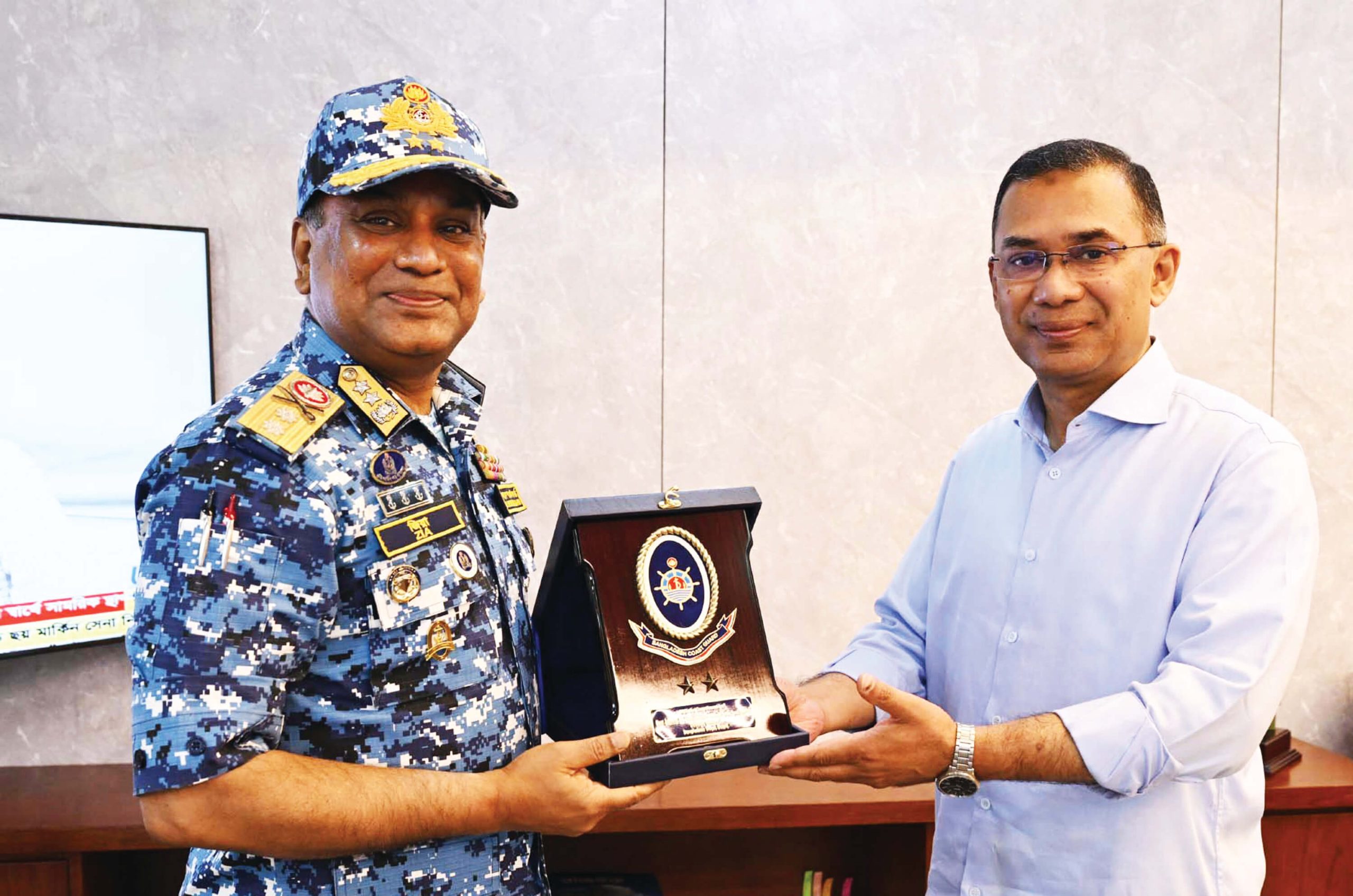 কোস্টগার্ড মহাপরিচালকের সাক্ষাৎ : প্রধানমন্ত্রী তারেক রহমানের সঙ্গে সৌজন্য সাক্ষাৎ করেছেন বাংলাদেশ কোস্টগার্ডের মহাপরিচালক রিয়ার অ্যাডমিরাল মো. জিয়াউল হক। গতকাল মঙ্গলবার বাংলাদেশ সচিবালয়ের মন্ত্রিপরিষদ বিভাগে প্রধানমন্ত্রীর কার্যালয়ে এই সাক্ষাৎ অনুষ্ঠিত হয়। বৈঠকের শুরুতে উভয়ে পারস্পরিক শুভেচ্ছা বিনিময় করেন। বিষয়টি নিশ্চিত করেছেন প্রধানমন্ত্রীর অতিরিক্ত প্রেস সচিব আতিকুর রহমান রুমন। রুমন বলেন, সাক্ষাৎকালে প্রধানমন্ত্রী বাংলাদেশ কোস্টগার্ডের দেশপ্রেম ও পেশাদারিত্বের ভূয়সী প্রশংসা করেন। তিনি বাহিনীর সদস্যদের নিরলস প্রচেষ্টার স্বীকৃতি দিয়ে বলেন, সমুদ্র উপকূল ও নদী তীরবর্তী এলাকায় শান্তি ও নিরাপত্তা বজায় রাখতে কোস্টগার্ড গুরুত্বপূর্ণ ভূমিকা পালন করছে। বিশেষ করে জনগণের স্বার্থে দুর্যোগ মোকাবিলায় তাদের জনসেবামূলক কাজগুলো অব্যাহত রাখার জন্য তিনি বিশেষ নির্দেশনা প্রদান করেন।