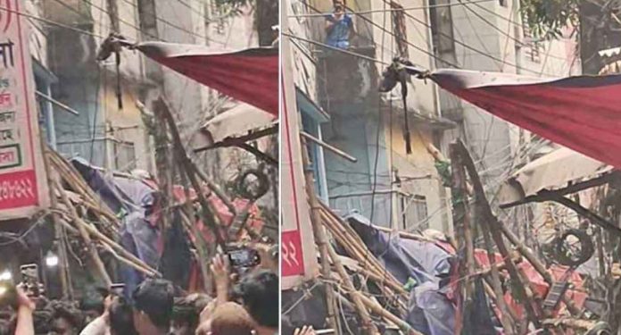 ভিডিও ফুটেজে দেখা গেছে, রেলিং পড়ে নিহতদের রক্তাক্ত দেহ রাস্তায় পড়েছে আছে। আশপাশের কয়েকজন লোক দৌড়ে এসে সেগুলো উদ্ধার করছেন। অন্তত একজনের মুখ ও মাথার সামনের অংশ থেতলে গেছে।