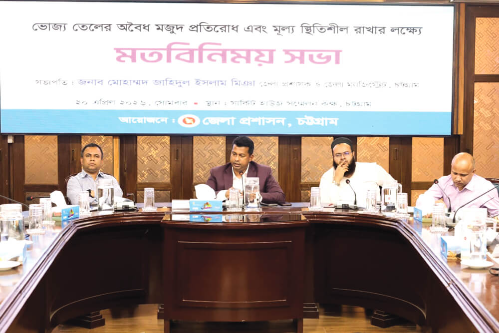 ঈদুল আযহাকে সামনে রেখে ভোজ্যতেলের অবৈধ মজুদ প্রতিরোধ এবং মূল্য নিয়ন্ত্রণ নিশ্চিত করার জন্য সংশ্লিষ্টদের নির্দেশ দিয়েছেন চট্টগ্রামের জেলা প্রশাসক মোহাম্মদ জাহিদুল ইসলাম মিঞা। গতকাল নগরীর সার্কিট হাউসের সম্মেলন কক্ষে আয়োজিত এক মতবিনিময় সভায় তিনি এ নির্দেশনা দেন।