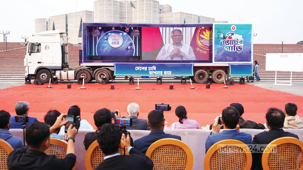 ‘দেশের চাবি, আপনার হাতে’ শীর্ষক গণভোট ২০২৬ ও ত্রয়োদশ জাতীয় সংসদ নির্বাচন উপলক্ষে সচেতনতামূলক প্রচারণার অংশ হিসেবে পরিচালিত ভোটের গাড়ির কার্যক্রমে মোট ৪০ হাজার ২০৬ জন টুকরো কাগজে তাদের মতামত লিখে সরাসরি প্রধান উপদেষ্টা অধ্যাপক ড. মুহাম্মদ ইউনূসকে জানিয়েছেন। খবর বাসসের।