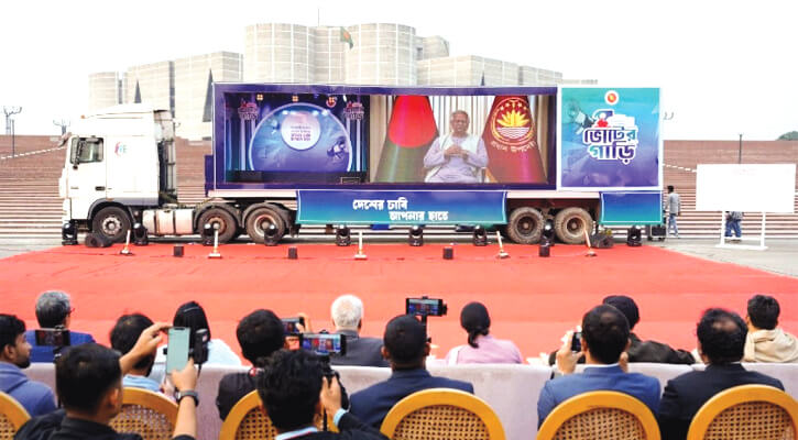 ভোটের গাড়ি’ উদ্বোধন : ত্রয়োদশ সংসদ নির্বাচন এবং প্রস্তাবিত জুলাই জাতীয় সনদ বিষয়ে গণভোটকে সামনে রেখে প্রচারণার উদ্দেশ্যে বিশেষভাবে নকশাকৃত ‘সুপার ক্যারাভ্যান’ নামে ১০টি ‘ভোটের গাড়ি’ গতকাল দেশব্যাপী যাত্রা শুরু করেছে। গতকাল বিকালে জাতীয় সংসদ ভবনের দক্ষিণ প্লাজায় আনুষ্ঠানিকভাবে ‘সুপার ক্যারাভ্যান’ উদ্বোধন করা হয়।