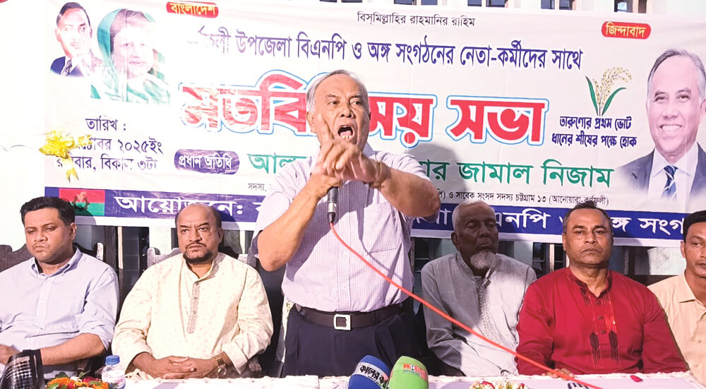 গতকাল বৃহস্পতিবার সন্ধ্যায় আনোয়ারা উপজেলার তৈলারদ্বীপস্থ সাবেক এই এমপির বাসভবনে কর্ণফুলী উপজেলা বিএনপি ও অঙ্গসংগঠনের মতবিনিময় সভায় তিনি এ কথা বলেন। এসময় আনোয়ারা উপজেলা বিএনপির সাবেক আহ্বায়ক মোশাররফ হোসেন, কর্ণফুলী উপজেলা যুবদলের সদস্য সচিব মোঃ ইব্রাহিম, যুগ্ম আহবায়ক ইলিয়াছ হায়দার রবিন, সিনিয়র সদস্য মো. হাসেম, মো. জানে আলম, মো. হোসাইন, মো. নজরুল, মো. সাইফুল, মো. আরফাত, মো. জনি ইসলাম, মো. ইসমাইল, বড়উঠান ইউনিয়ন যুবদল নেতা মো. ওমর ফারুক জনি প্রমুখ উপস্থিত ছিলেন।